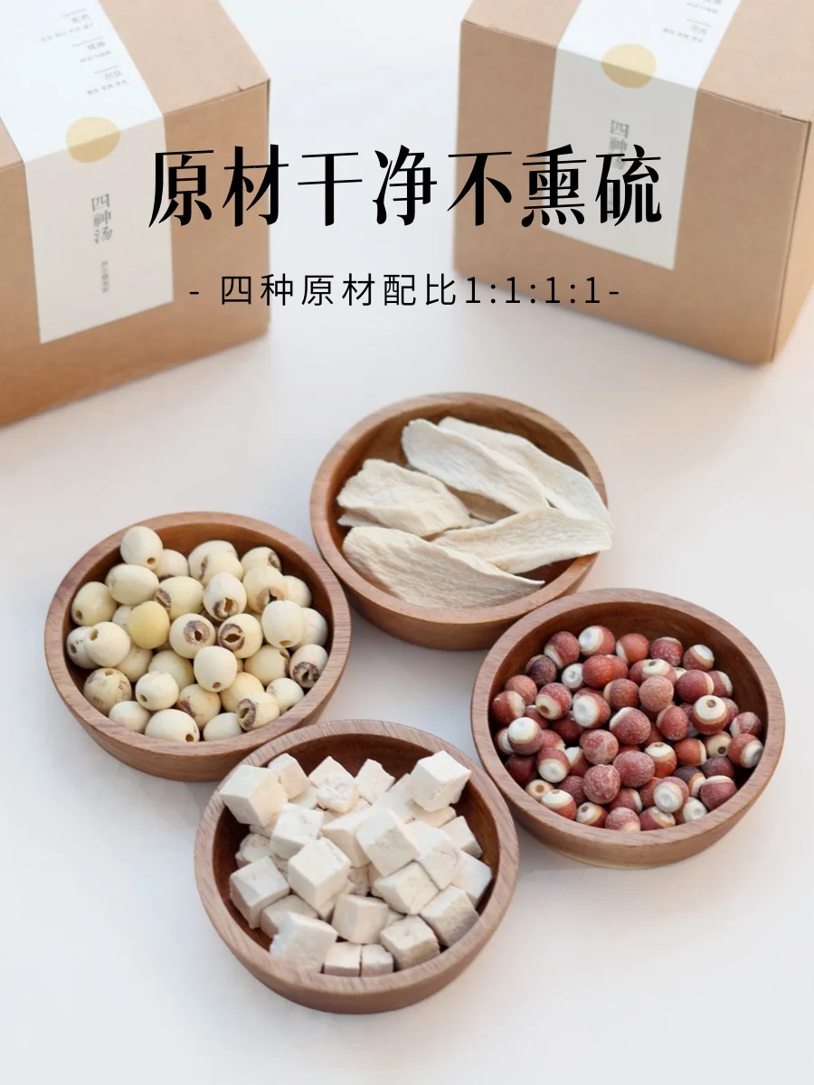 👉四神汤配料:四种原材1:1:1:1,一般为10克/15克每种。