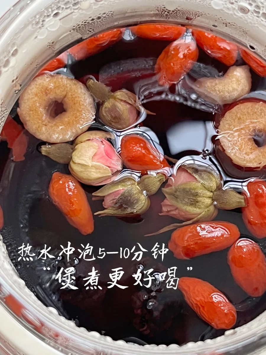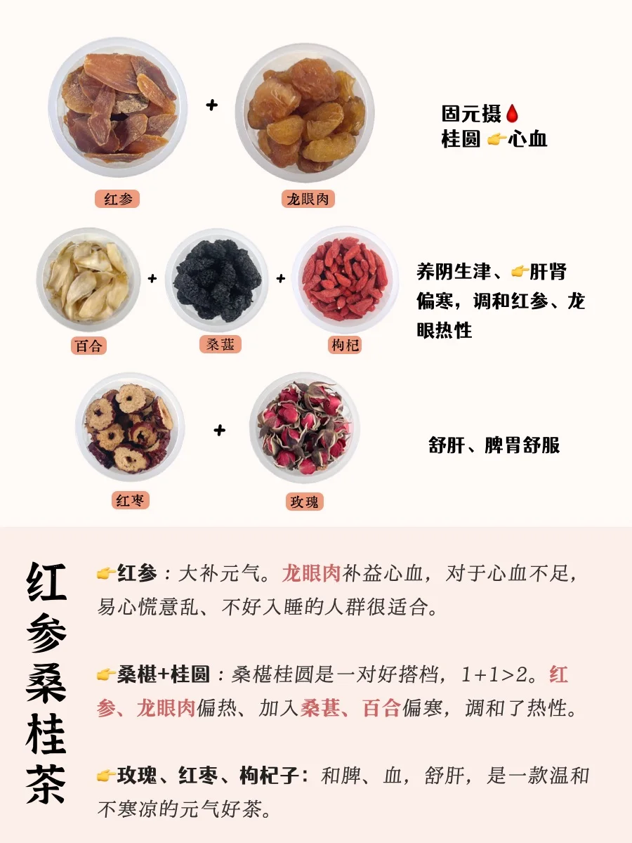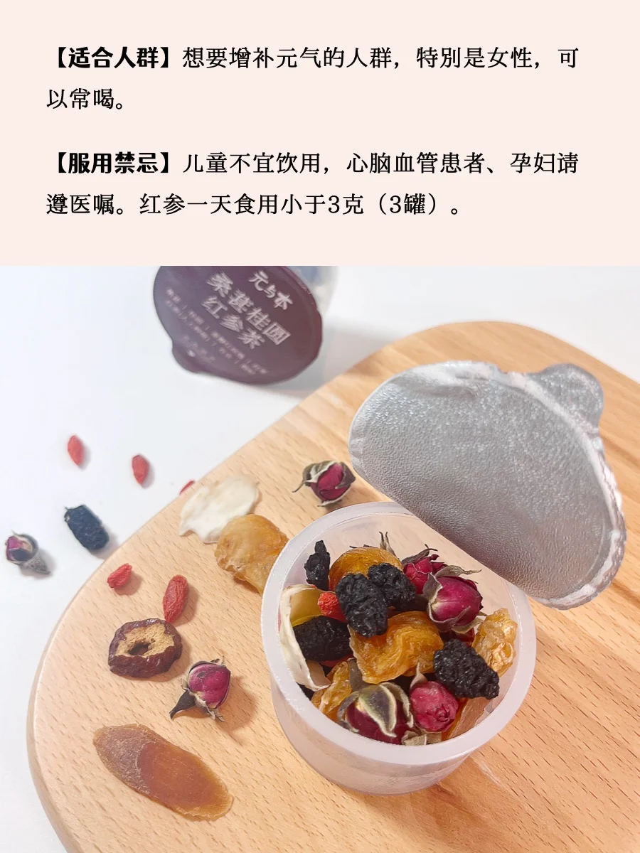 🌹配方:红参、桑葚、桂圆、玫瑰、百合、红枣。