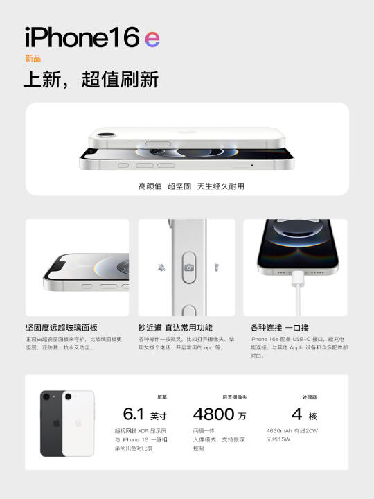 传了很久的iPhone16e终于登场了,“iPhone上新,超值刷新”