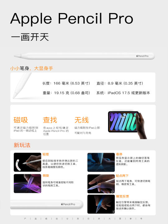 搭配的Apple Pencil: Apple Pencil Pro/Apple Pencil(USB-C)(在意料之中)