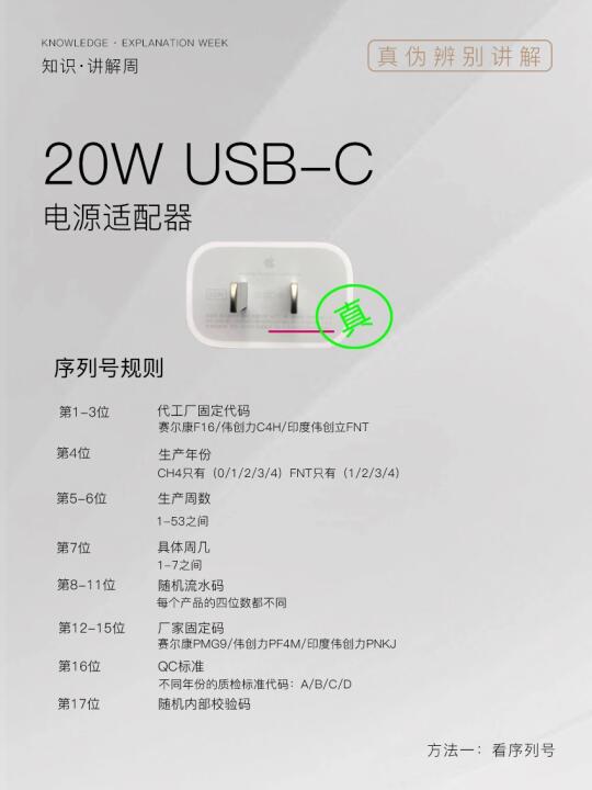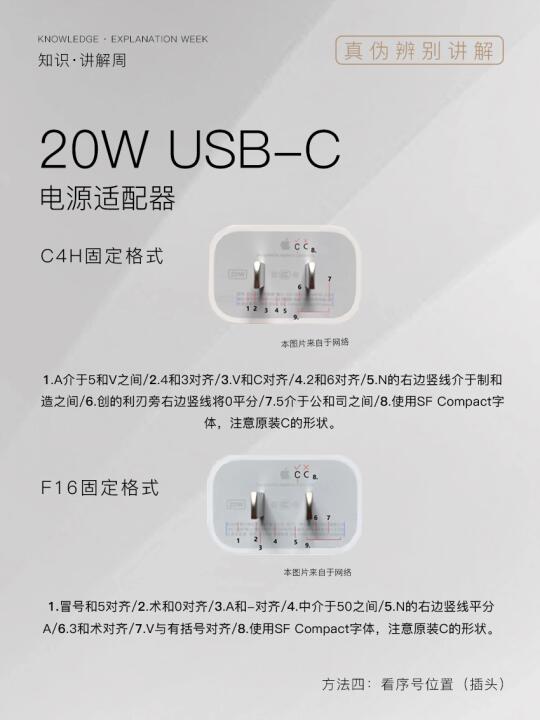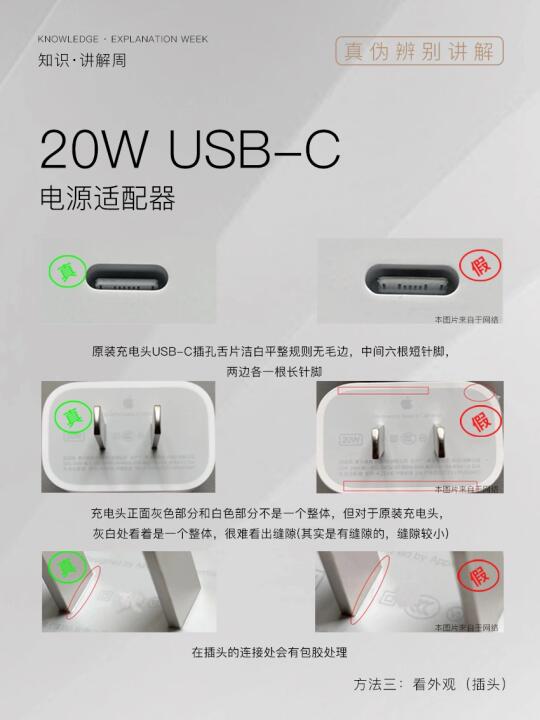 2. 充电头正面灰色部分和白色部分不是一个整体,但对于原装充电头,灰白处看着是一个整体,很难看出缝隙(其实有缝隙的,缝隙较小难以看出)。