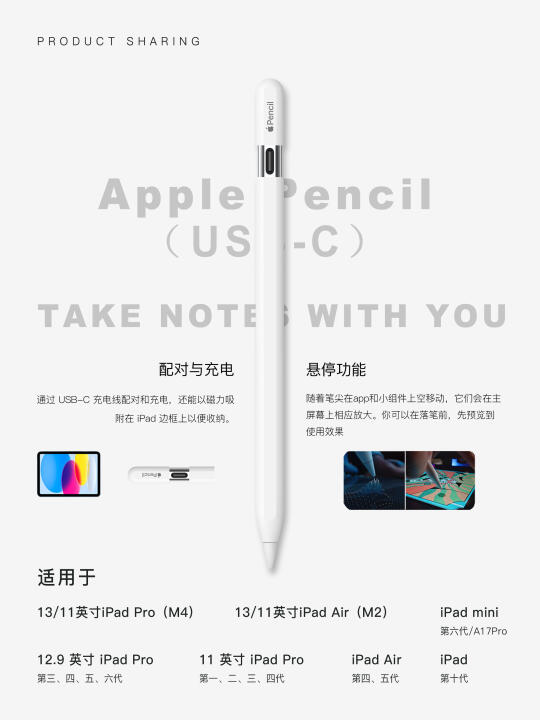当然,也有点小遗憾:没有压力感应,对于专业绘画来说可能不够用。不支持无线充电,需要插线充电。但总体来说,这支Apple Pencil (USB-C) 绝对是性价比之王!如果你和我一样,平时主要用来记笔记、简单绘画,那这支笔绝对够用!而且价格这么香,还要啥自行车!