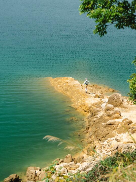 湖水在阳光下是那种透绿透绿的 拍照特别出片