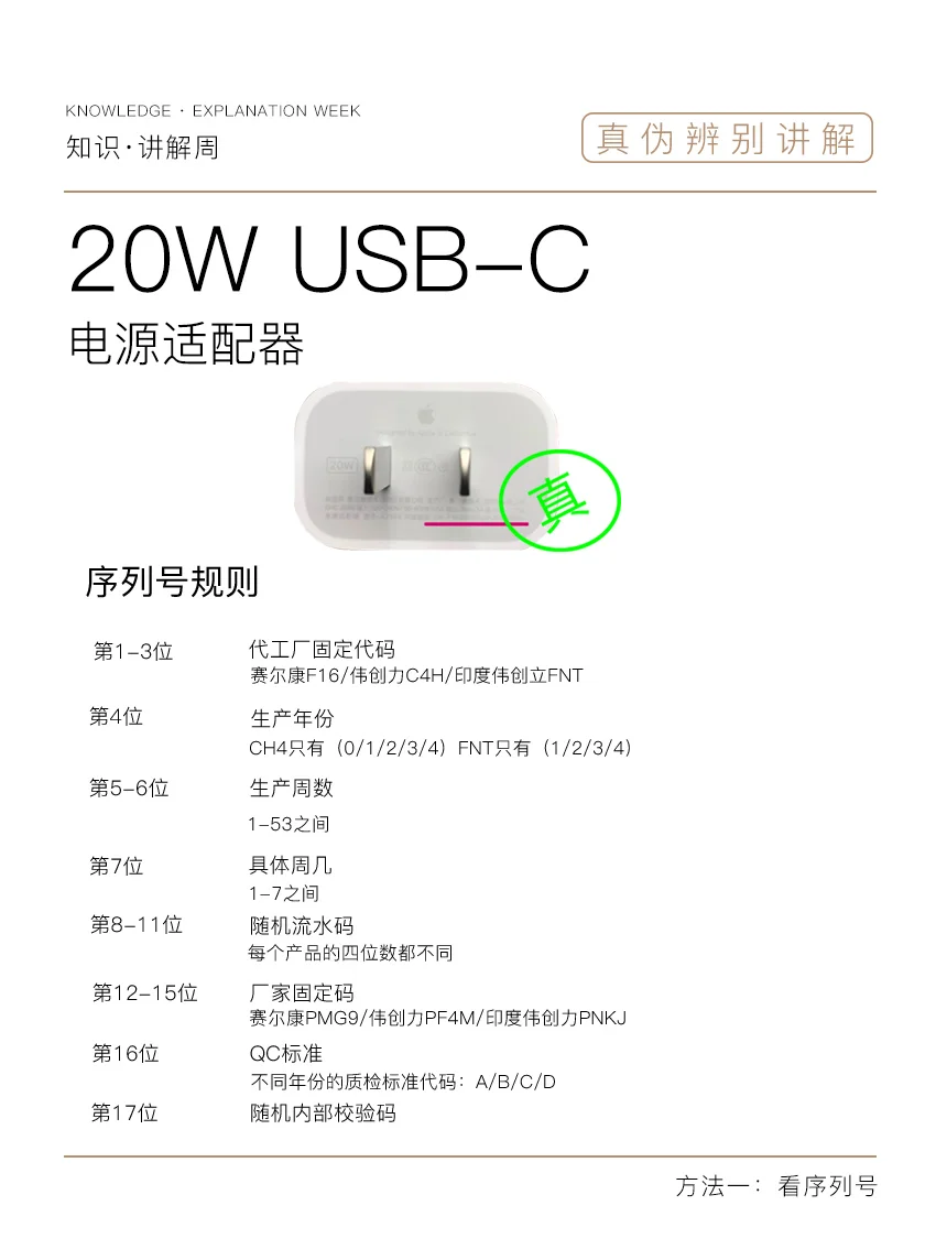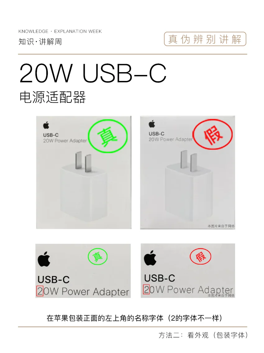 再入手苹果20W USB-C电源适配器的时候大家要选择苹果原装配件,让大家买的放心用得安心!很多朋友不知道如何辨别20W真伪,下面就来为大家坐一期如何鉴别20W真伪知识分享!