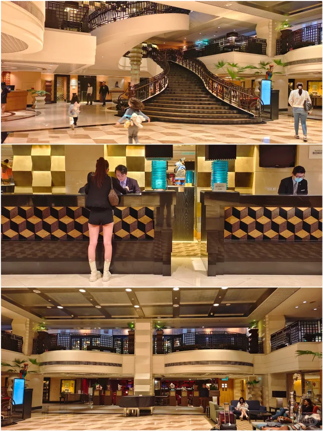 香港喜来登酒店,位于热闹的尖沙咀,位置一流,比邻香港半岛酒店,马路对面是 K11 Musea、香港丽晶酒店、香港太空馆、星光大道等等,再前面就是维多利亚港了, 酒店大堂在G层。二楼有米其林餐厅“天宝阁”。(P1~P4)。