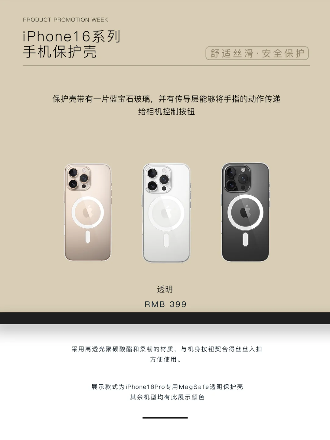 因为手机壳相比以往多一个亮点,那就是“蓝宝石”科技!下面就来为大家分享一下Apple 明星款配件也是入手iPhone16系列后“闭眼入”的配件: