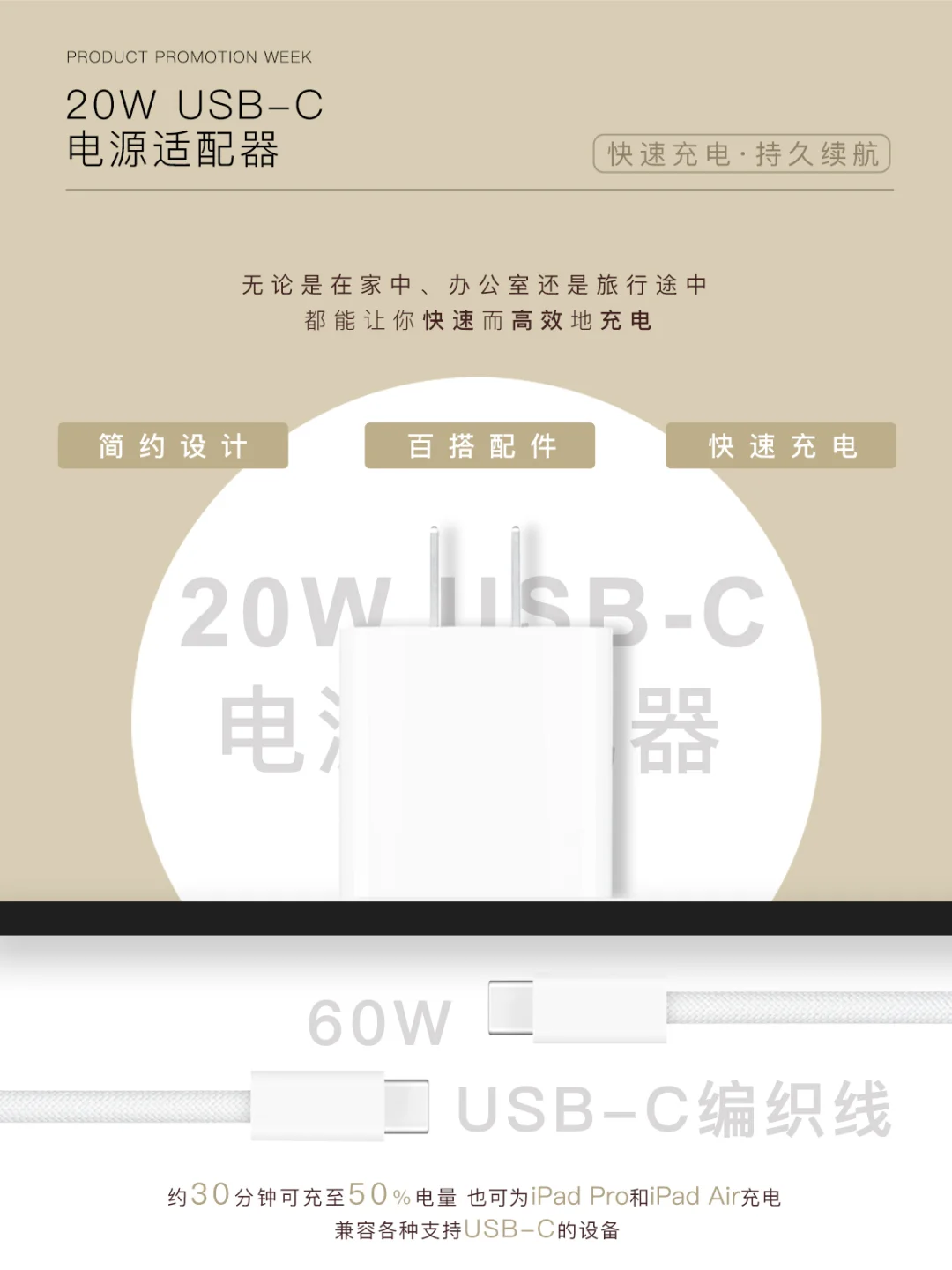 白色圆润光滑表秒面,延续使用了Apple独居风格,外表白色烤漆亮面。小巧轻便,方便随时携带,随时为设备充电,可以为你的iPhone或iPad提供20W功率快速充电。