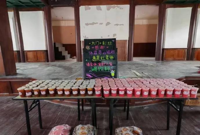 惠英红探班陈伟霆~就包了全剧组的奶茶,署名还写着“陈伟霆的姐姐”。杯杯甜里裹着的