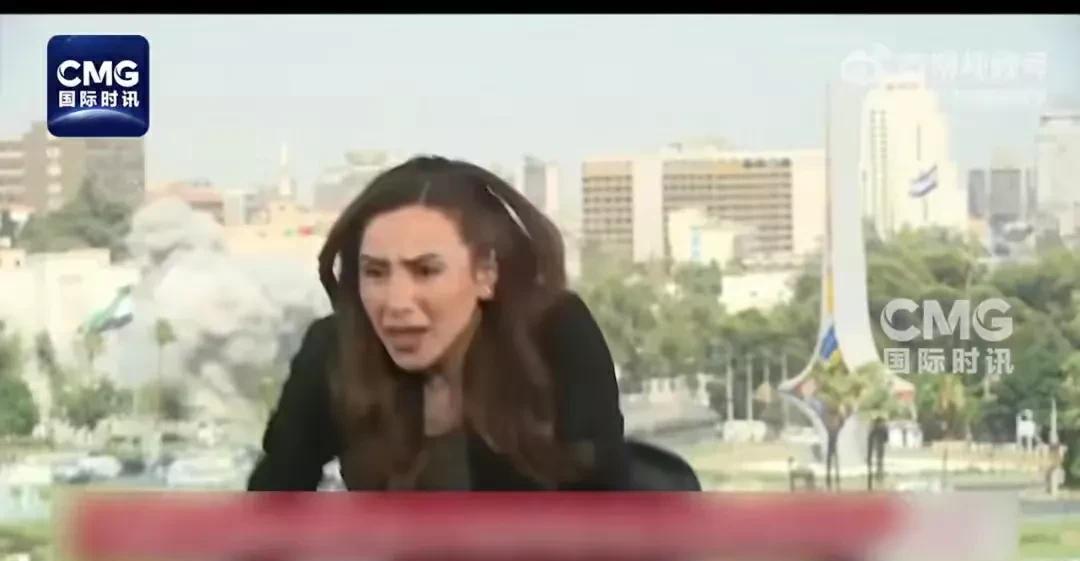 这个叙利亚女主播真的很漂亮,同样是听到爆炸声逃跑,但她逃跑的姿态比伊朗女主播漂亮