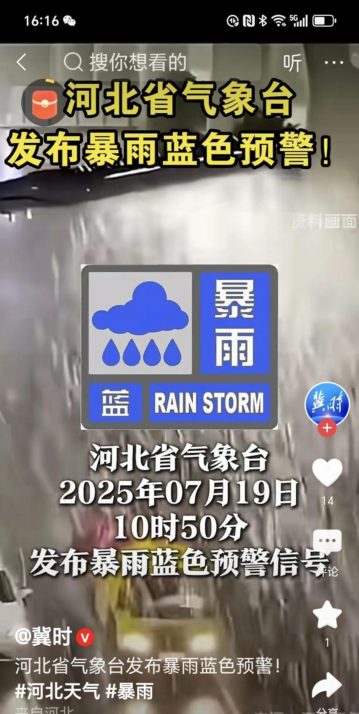 河北这几天大暴雨,又来了,石家庄张家口,承德,有大雨到暴雨,今年,河北省雨水比较
