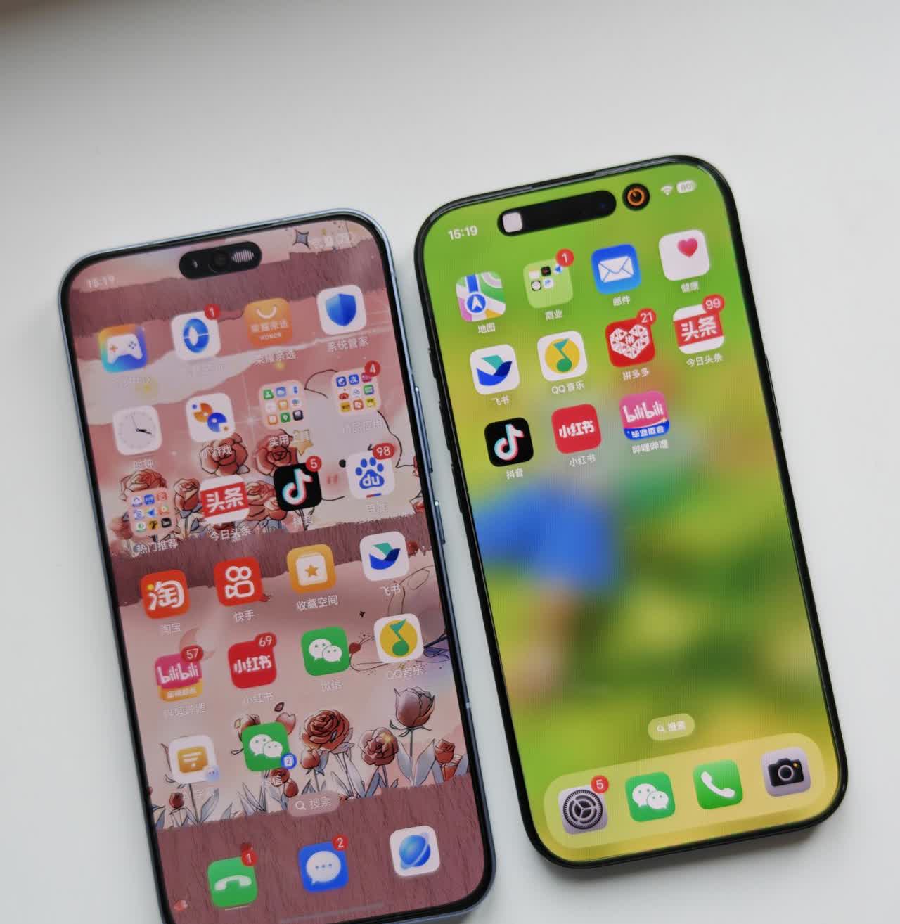 荣耀手机有比苹果好用吗?居然长这么像.... 拿到同事的荣耀400 Pro才发现,荣耀手机跟iPhone这么像的啊,锁屏通知都是在下面的,其它国产品牌好像都是上面的吧? 而且苹果有灵动岛,荣耀有灵动胶囊,这两还能互传文件,苹果用户看了直呼内行啊,大家觉得荣耀的体验好吗?跟苹果比咋样?