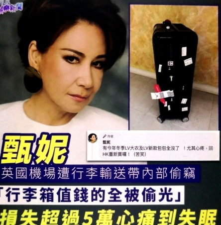 据港媒报道,香港歌手甄妮在英国机场行李箱被偷,箱内的LV大衣及LV包包等值钱的东西全被偷光,损失超过5万元!