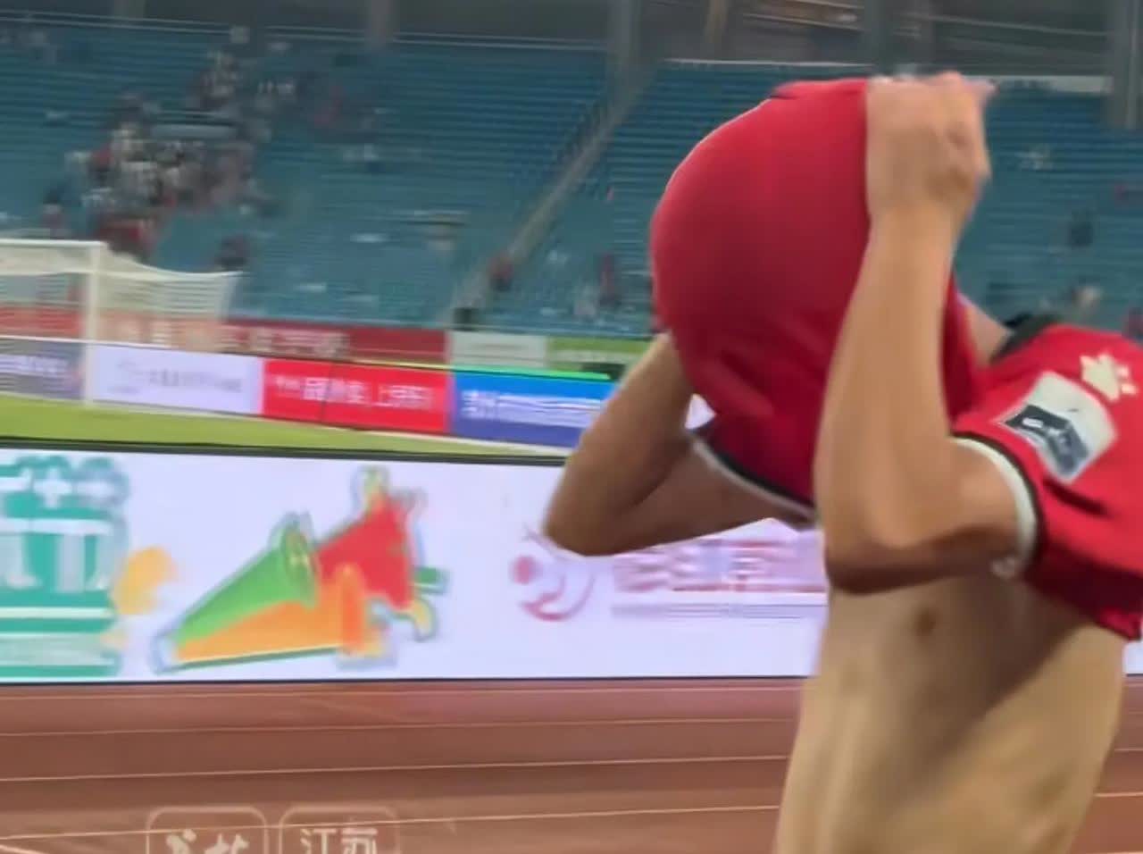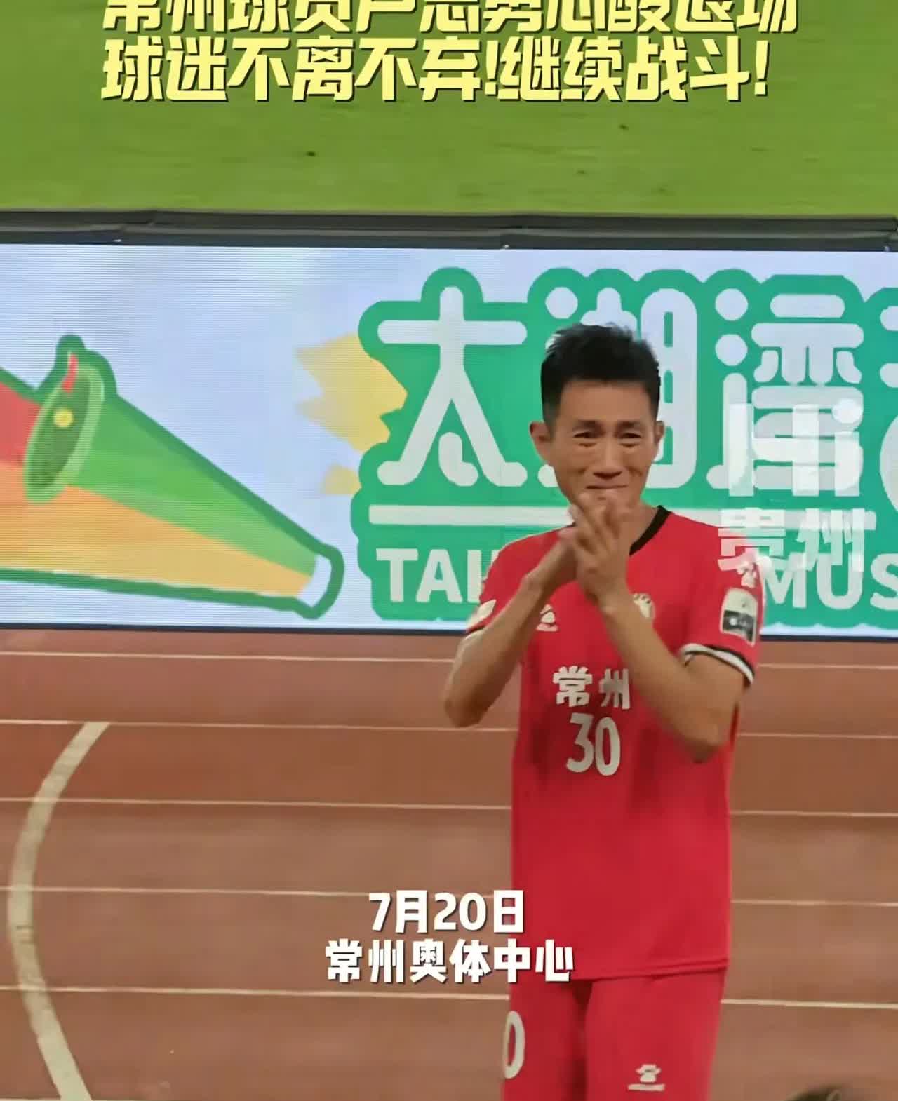 常州球员卢志勇比赛后泪崩。只因在跟球迷打招呼后,球迷们不断的鼓励,一直喊着继续战