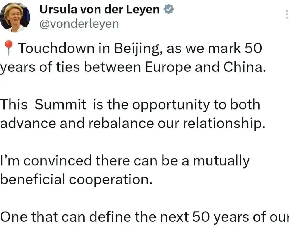 一位是欧洲理事会主席,另一位是欧盟委员会主席,两人都是主席地位却不相同,科斯塔相当于国家元首,而冯德莱恩相当于政府首脑! 欧洲理事会主席科斯塔的职能侧重外交代表,任期两年半可连任一次。其核心职责是主持欧盟峰会、协调成员国立场,并在国际场合代表欧盟整体利益。 据悉,7月24号,欧盟的冯德莱恩、科斯塔已经抵达了北京,准备参加今天将举办的中欧峰会。那么他们这次来是有什么事情呢? 冯德莱恩自己的说法是:“此行是纪念欧中建交50周年,希望借此推动和重新平衡双方的关系。她坚信双方能够实现互利合作,并且推动下一个50年的双边关系发展”。 经历了欧美的虚与委蛇,种种行为。中方在中欧关系发展中,变得更为务实。中欧并没有不可化解的地缘政治矛盾,只要在维护自由贸易体系、全球化、多极化和多边主义的大方向上实现团结协作,那对于双方都是利好。 有网友就说了,欧盟这是被美国主子放了血,想起中国的好了。西方人其实骨子里一直都是丛林法则那一套。是中国三千年前的那种玩法。总觉得有一点能耐就想把其他人都欺负一下。 反正吧,多个朋友多条路,多个冤家多堵墙。中欧贸易正常化,利大于弊。不管他们是抱有任何想法,或者是表面功夫等等。咱们也会安然自若,所以就让他们演绎吧。那么大家怎么看呢?欢迎交流! (图片素材来源网络侵删)