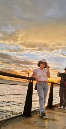 小杨阿姨晒出前几天她去淡水左岸巴黎和阿敏阿姨一块儿拍的相片,那的海的确非常的美,