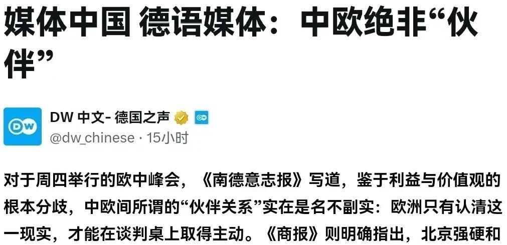 德国媒体不高兴了!来自德国媒体7月25日消息说,欧洲也要清醒一点,应该要认识到中