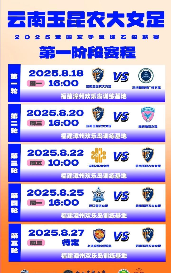 2025赛季#女乙联赛云南玉昆农大女足小组赛赛程!#云南玉昆#云南农业大学女