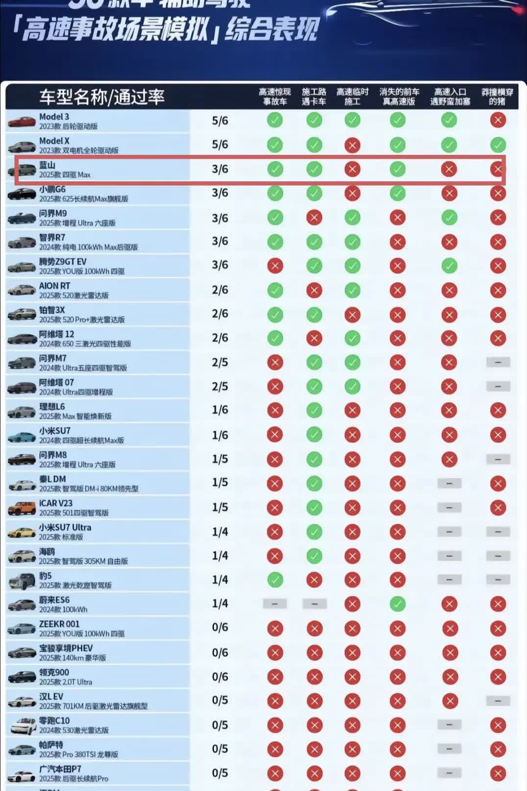 这次长城汽车的魏总可是给其他车企狠狠地上了一课。 当年魏总在开发布会时,突然宣称,长城汽车的智驾处于国内第一梯队。紧接着,魏总又表示把“梯队”二字去掉,长城汽车智驾就是第一。当时,很多人都嘲笑魏总,认为魏总在说大话。 结果,这次懂车帝联合央视,对市面上36款主流车辆的智驾功能进行了测试,长城的魏牌蓝山取得了好成绩,排名仅次于特斯拉,智驾水平真的达到了国内第一梯队。 大家说说,要是国内车企都像魏总这样实事求是,中国汽车不早就称霸全球了吗?