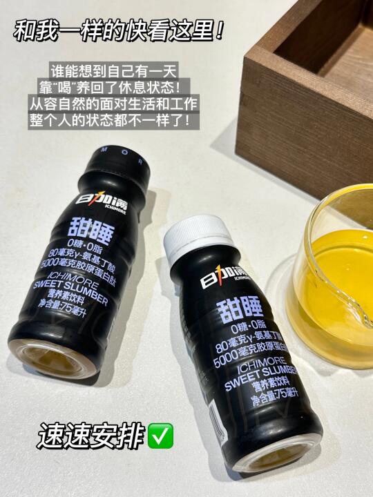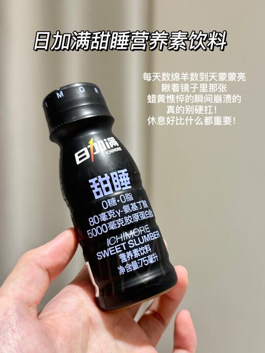 谁懂啊!“休息好”对咱们职场人来说简直是顶级奢侈品!每天熬到双眼通红,数绵羊🐑数到天蒙蒙亮,好不容易眯过去还净做些光怪陆离的梦,早上起来瞅着镜子🪞里那张蜡黄憔悴的脸,真的会瞬间崩溃,连带工作效率都直线下滑… - 到底为什么会这样呢?今天我这个成分党就来给大家好好科普一下,📝这是因为我们大脑的“刹车系统”失灵了!我们的大脑里有一种天然存在的非蛋白质氨基酸--GABA(γ-氨基丁酸),掌管着大脑里的“舒缓开关”,让紧绷的状态慢慢松弛下来!但是现在大多数人由于长期压力大+过度用脑+作息混乱,导致GABA系统严重掉线⚠️,大脑无法冷静下来进入休息状态! - 由于休息不好破坏了昼夜节律,降低了身体对胶原蛋白肽的吸收率,导致在悄悄走下坡路⬇️!所谓的胶原蛋白肽,是在通过生物酶解技术处理后,由于分子量小好吸收,💪能让自己的状态悄悄变好! 这俩成分搭配在一起,一个帮着放松,一个充充电,是不是很妙?🙌🏻 - 而✅日加满甜睡营养素饮料里就有这对黄金搭档! 这款饮料的亮点可不止这些。它还加了🔍110mg茶叶茶氨酸,能和GABA配合,让放松的感觉更到位;🔍5000mg胶原蛋白肽搭配15mg透明质酸钠;🔍还有烟酰胺和维生素B6,都是身体喜欢的“营养餐”。而且是75ml小瓶装,揣在包里不占地儿,0糖0脂的设定,喝着也没负担! - 现在每天我都晚上会来一瓶,酸酸甜甜的口感👍 休息够了状态自然也就在线,连带着工作效率都上来了!👏职场姐妹们,要是也想让自己歇得舒坦、状态在线,都可以把它安排上啦!