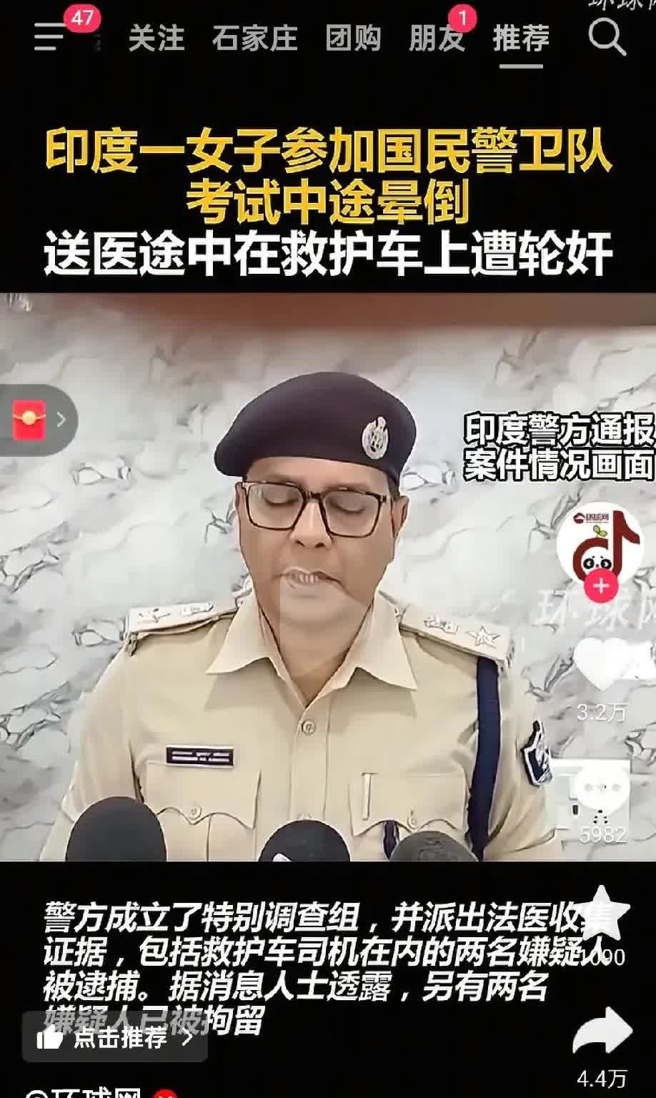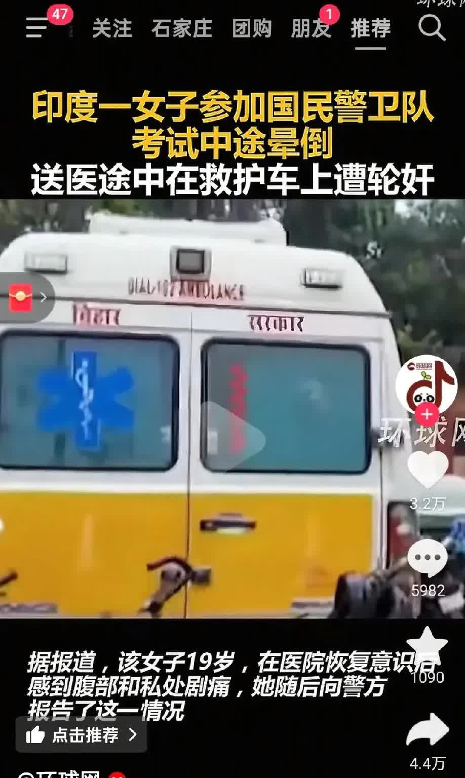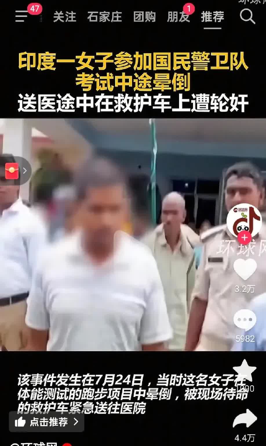 印度又出事啦!一名19岁女子参加国民警卫队考试晕倒,被送往医院。结果在送医途中,