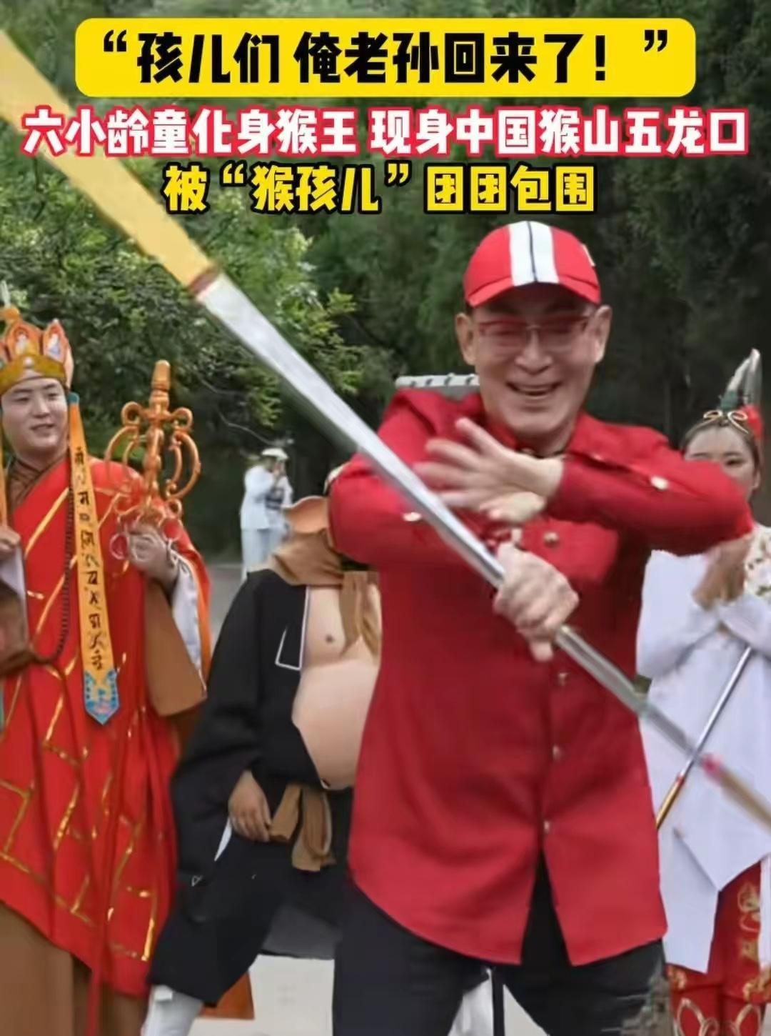 猴王回归!六小龄童济源景区再现经典,金箍棒耍出童年回忆杀![比心] 7月19日,六小龄童在社交平台分享了一段视频,开头闪现的猕猴瞬间把网友拉回“花果山”的记忆。视频里,66岁的他被人群簇拥,精神矍铄,面对镜头频频挥手,标志性的猴王笑容依旧亲切。这段视频记录的是他前一日在河南济源五龙口景区的活动。作为新晋“济源公益文化旅游形象大使”,六小龄童不仅现场为景区“孙悟空”扮演者们传授棍法,还与太行猕猴亲密互动,最令人热血沸腾的是他挥舞金箍棒的片段:银灰色棍棒在掌心飞速旋转,时而绕指如行云流水,时而横握似定海神针,围观人群中瞬间响起《西游记》主题曲的哼唱声。 值得一提的是,六小龄童此行还被济源景区保育员匡三傲一家三代护猴的故事打动。“他们扎根猴山守护猕猴,和我家族四代传承猴戏的精神一模一样。”他在采访中动情表示,希望通过合作让更多人读懂这份坚守的浪漫。从86版《西游记》到短视频平台,六小龄童始终在探索传统文化的现代表达。这次他在景区授艺时,特意强调“孙悟空的眼神要有戏,得透着机灵劲儿”,并手把手纠正演员的棍花动作。这种对细节的执着,正是他能塑造永恒经典的秘诀。