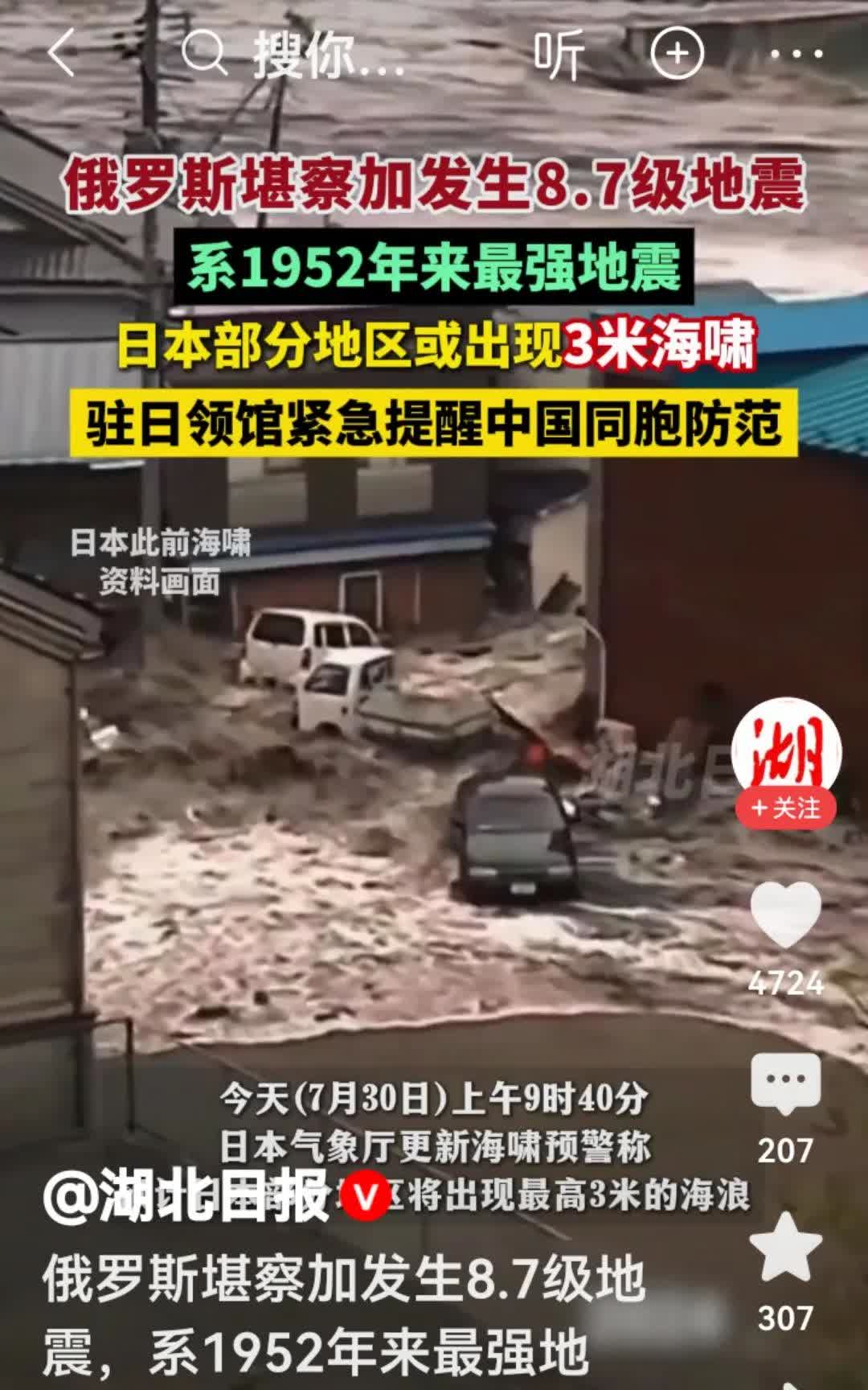 意外收获,地震和海啸阻止了日本核废水排放。 7月30日,堪察加半岛大地震引发的海啸,已经开始波及日本东京等地。 8.7级地震带来的海啸,浪头高过3米,对日本多地造成了破坏。 尤其是东京电力公司辖下的福岛第一核电站危险最大。7月30日,当地时间上午8点51分,福岛第一核电站人员,已经全部离开岗位避难;9点5分开始,福岛核电站已全部停止核废水排放。 这结果还是多少有点出人意料。全世界抗议了两年,尤其是咱们因此都禁止日本海产品进口了,(刚有限度放开),都没能阻止。 想不到,一场海啸的作用,比人类的任何层级抗议都管用。 (来源:上观新闻,2025,7,30)