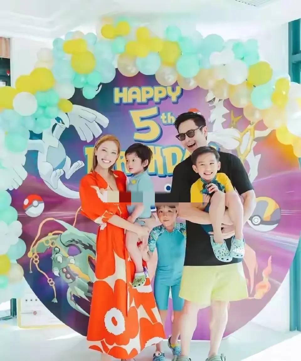郑嘉颖与陈凯琳为二儿子温馨庆贺5岁生日,一家五口其乐融融,幸福满溢。现场布置童趣