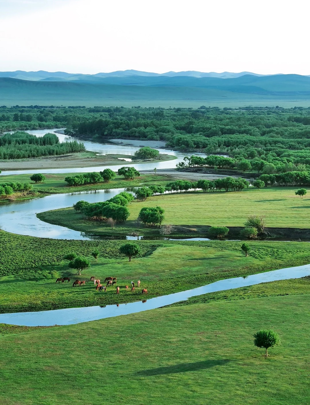 呼伦贝尔 美景推荐: 1、莫尔格勒河,老舍笔下的“天下第一曲水”,站在观景台俯瞰草原。 2、额尔古纳湿地:亚洲第一湿地,可以看河流、森林、草地相互交织。 3、黑山头,在这里可以骑马驰骋草原,还能看一场绝美的日落。 4、满洲里套娃广场,充满异域风情,世界最大的套娃建筑,拍美照。 还有白桦林景区、烤全羊、手扒肉、锅茶都值得打卡!