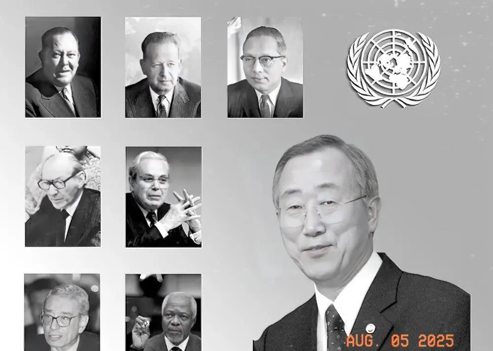 联合国组织成立于1945年,至今已有80年的历史,在这80年的历史中,一共产生过9位秘书长。 下面这张表格,帮你了解这9位秘书长的姓名、国籍、年龄和任职时间。 前7位秘书长都已离世,健在的有潘基文和现任秘书长古特雷斯。 中图:是前8位秘书长。 右图:为现任秘书长古特雷斯。