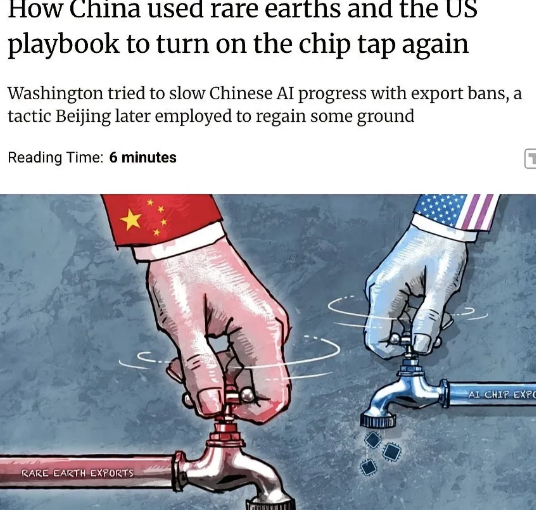 美媒把美国芯片禁令与中国稀土管制比喻成水龙头,但中国的明显更大一些。 关于美国芯