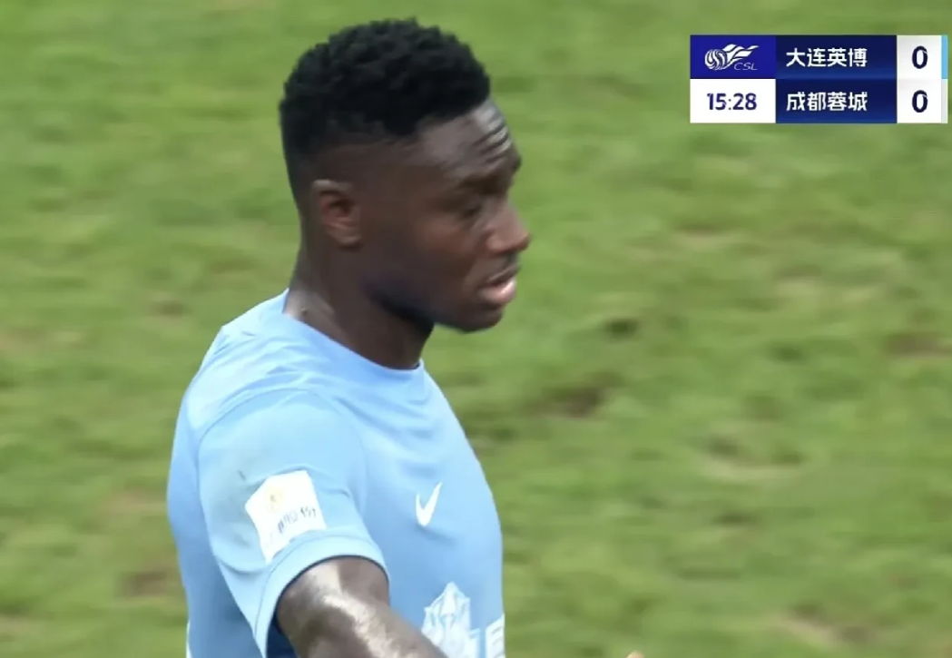 果不其然!比赛进行到第23分钟,大连英博海发队发动快速反击,马莱莱在落后成都蓉城队的元敏诚两个身位的情况下,高速冲击反追成功,顽强的把皮球留在场内,马莱莱和元敏诚手上都有动作,但主裁判竟然判罚马莱莱犯规,这也引起了马莱莱的不解和不满[吐血]