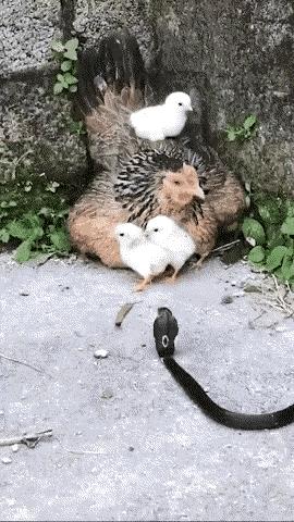 母爱伟大,这只鸡妈妈为了保护孩子,和眼镜蛇大战十个回合,将其打得落荒而逃。