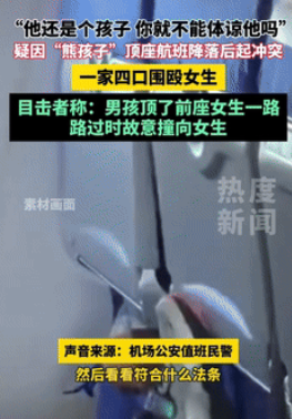 “严惩到底!”深圳飞往大连的航班上,一男孩持续用脚踢前排座椅,前排女子多次警告无