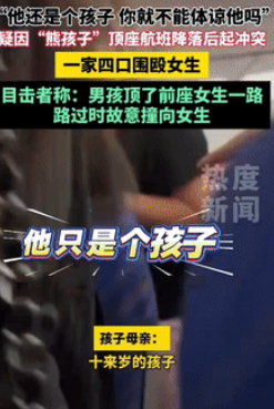 “严惩到底!”深圳飞往大连的航班上,一男孩持续用脚踢前排座椅,前排女子多次警告无果后骂了男孩,谁料,男孩很不爽,路过时故意撞掉女子耳机,飞机降落后,双方发生发生争执,女子被一家四口围攻,一度打趴在地,女子要报警,男孩妈妈表示:他还是个孩子,你太过分了!   "又是一句他就只是个孩子,这种话去给警察说吧!"女子愤怒的说道,8月南方航空公司上演了一场令人震惊的冲突,当飞机从深圳飞往大连的航程即将结束时,一场因孩子踢座椅而引发的争执,最终演变成了令人不忍直视的肢体冲突。   这架航班于当天下午从深圳起飞,按计划应在8时抵达大连周水子国际机场,然而本应平稳的旅程,却因一名8岁男孩持续用膝盖顶撞前排女乘客座椅背部而蒙上阴影,据目击者描述这名男孩在整个航程中不断用腿顶前排座椅,而前排的女生起初选择了忍耐,多次回头示意,但男孩的行为并未停止。   在多次警告无果后,这名女子终于忍不住出声制止,言语中带着明显的不满,谁料,这一举动彻底激怒了后排的男孩,当飞机降落后,男孩在经过女子座位时,故意撞掉了她的耳机,这一举动成为了冲突升级的导火索。   飞机降落后双方迅速爆发激烈争执,令人震惊的是男孩的家人——一家四口——竟然集体围攻这名女子,在混乱中,女子一度被打趴在地,场面一度失控,当女子表示要报警时,男孩母亲却抛出了那句经典辩解:"他还是个孩子,你太过分了!"   大连机场公安派出所已证实,警方已介入调查处理这起航班上的打架事件,这起事件再次将"熊孩子"及其家长在公共场合的行为问题推上了风口浪尖。   这起事件在网络上引发了广泛讨论,有网友表示:"公共场所不是自家客厅,孩子不懂事家长不能不懂事,纵容孩子打扰他人,还动手打人,这样的家长才是真正的'熊家长'。"   另一位网友则认为:"航空旅行本就充满压力,遇到持续骚扰确实令人崩溃,但动手打人绝对不是解决问题的办法,双方都应该冷静处理,通过合法途径解决纠纷。"   这起事件不仅仅是个人素质问题,更是公共空间行为规范的缺失,在密闭的机舱环境中,每个人的行为都可能影响到他人,家长有责任管教孩子,而成年人在面对冲突时也应保持理性。   目前警方正在对这起事件进行调查,相信法律会给出公正的裁决,而这起事件也应该成为一面镜子,让更多人反思在公共场合应有的行为准则和责任意识。   对此你怎么看?欢迎大家在评论区留言讨论。