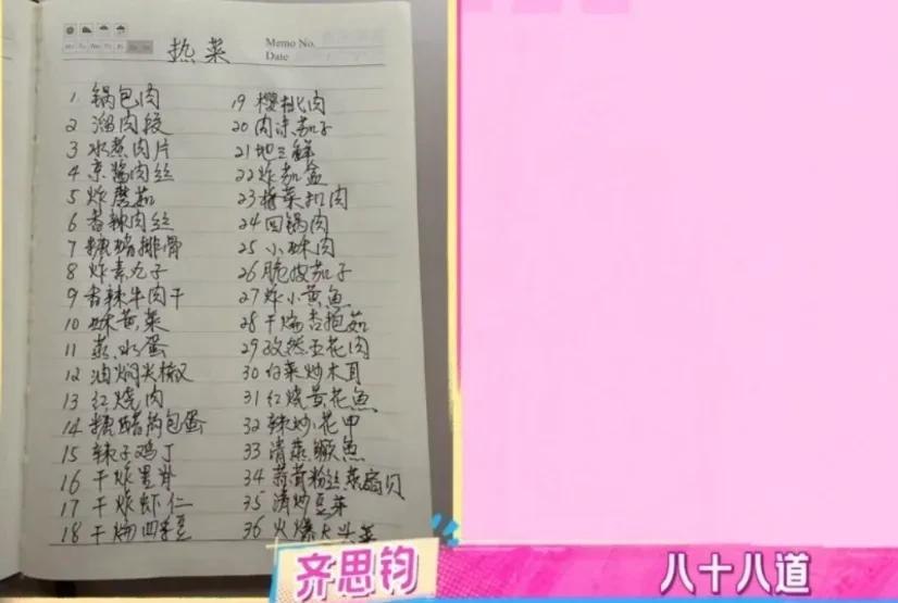 张予曦的妈妈为了更好的照顾张予曦,每天和张予曦同吃同住,为她准备了88道菜的菜谱