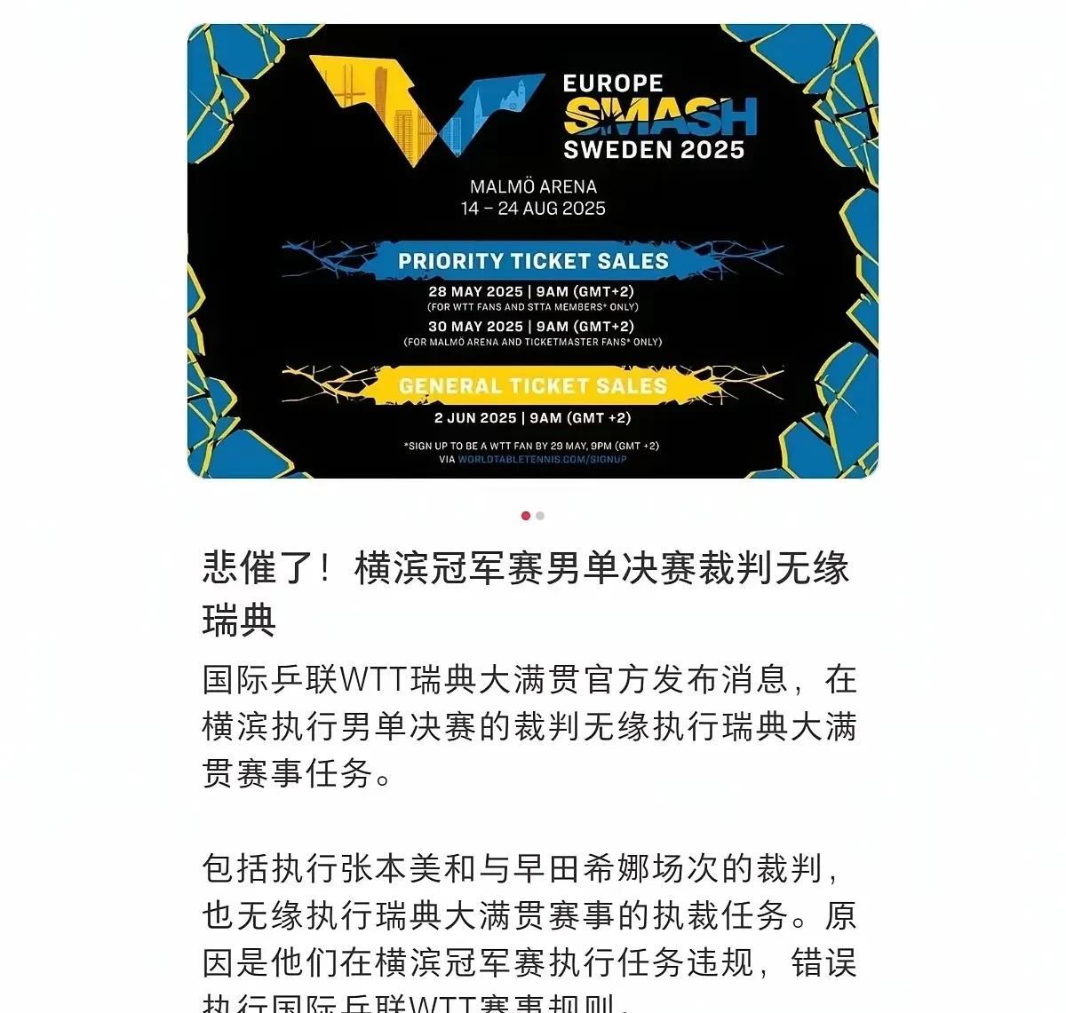 日本横滨冠军赛决赛裁判,被拒绝邀请作为欧洲大满贯裁判,张本智和的处罚估计已经在路