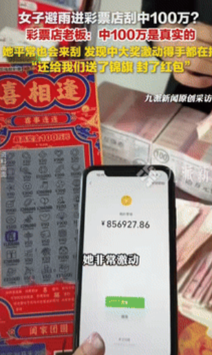 “这就是命啊!”云南玉溪,一女子为避雨跑到了彩票店,闲着无聊就买了一整本刮刮乐,谁料,仅刮开第6张,就发现中了100万元大奖,女子激动的手都在抖,领完奖后,女子做了一件事,让店主很是诧异,网友:果然老话说的对,贵客带雨,雨天来财! "如果不是在你这里买的话我能中奖吗?锦旗和红包都收下吧!"女子激动的说道,这令人难以置信的一幕发生在云南玉溪红塔区的一家普通彩票店内,一场突如其来的大雨,竟意外地带来了一场百万惊喜。 8月8日玉溪大雨倾盆而下,一位女士为了躲避这场突如其来的暴雨,匆匆跑进了路边的一家彩票店,雨水打湿了她的头发和衣角,她站在店门口,看着外面滂沱的大雨,一时半会儿似乎没有停歇的迹象。 就在这时这位女士主动向店主询问:"店里有刮刮乐吗?躲雨正好玩一下,"店主热情地介绍了店内的各种即开型彩票,而这位女士则做出了一个让所有人都没想到的决定——她要买一整本刮刮乐。 店主回忆当时这位女士看起来只是想打发避雨的无聊时光,谁也没想到她会选择购买整本刮刮乐,更令人惊讶的是,当她开始刮开彩票时,奇迹发生了——仅仅刮到第6张,她就发现自己中了"喜相逢"即开票的最高奖金100万元。 这位女士反复确认了好几遍,才敢相信自己真的中了百万大奖,她立即打电话给家人分享这个好消息,声音因为激动而颤抖,领完奖后这位女士做了一件让店主感到十分诧异的事情。 她特意回到这家彩票店,送来了一面锦旗和一个红包,并说出了开头那句令人印象深刻的话,她表示,如果不是因为这场雨,如果不是选择这家店,她可能永远也不会有这份幸运。 店主被这份真诚深深打动,他说:"开店这么多年,见过不少中奖的,但像这样特意回来感谢的,还是第一次遇到,"这位女士的举动不仅让店主感到温暖,也在当地传为佳话。 这起事件很快在网络上引起了热议,网友们纷纷发表自己的看法,有网友表示:"果然老话说的对,贵客带雨,雨天来财!这位女士的运气真是好到爆棚,一场雨带来了百万财富,这样的故事简直比电影还精彩。" 另一位网友则认同道:"这不仅仅是运气的问题,更是一种缘分,如果不是那场雨,如果不是她选择进店避雨,如果不是她决定买整本刮刮乐,这一切都不会发生,有时候,生活中的小决定真的会改变人的一生。" 这个真实发生的故事,让我们看到了生活中的偶然与必然,一场雨,一次避雨,一个随意的决定,最终带来了一份意想不到的惊喜,正如那位中奖女士所说,这一切都像是命中注定的安排。 对此你怎么看?欢迎大家在评论区留言讨论。