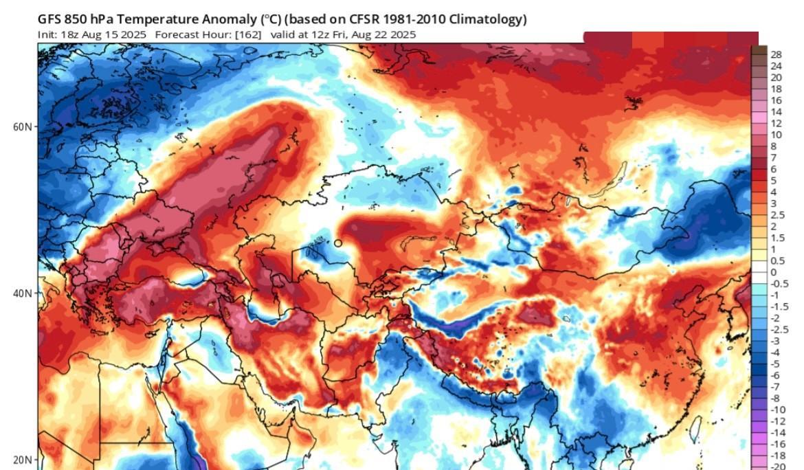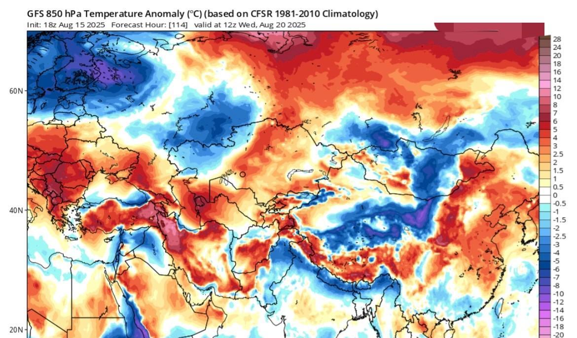 【冷空气观察】gfs预报19日在哈萨克斯坦有冷堆现身。这样一来,西风带引导冷槽东移进入我国。加上有高原槽东移,后面西北等地有降温降雨天气发展。考虑东北和华北有冷空气渗透背景下,又会激发降雨出来。 从环流来看:西伯上空出现巨大暖气团活动。叠加副高北上影响背景下,冷空气弱化,南下无力。未来中东部这种气温偏高局面无法撼动。