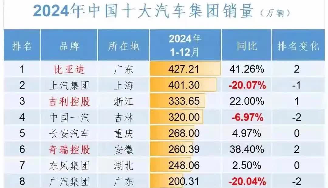 2024年中国汽车厂家利润总结出炉,第一名的比亚迪利润差不多是后面三家总和,前三名的都是民营企业,国营三大汽车厂家排名靠后。 前五名依次为: ①比亚迪,净利润402.5亿元,凭借技术创新、多元产品及庞大销量夺冠; ②吉利,净利润166.32亿元,新能源车型热销,品牌与产品结构优化助力盈利; ③奇瑞汽车创造奇迹,净利润达到150亿元,出口汽车数量位列前茅; ④长城汽车,净利润126.92亿元,海外与新能源市场表现出色; ⑤理想汽车,净利润80亿元 ,精准产品定位使其成为最早盈利的新势力车企。