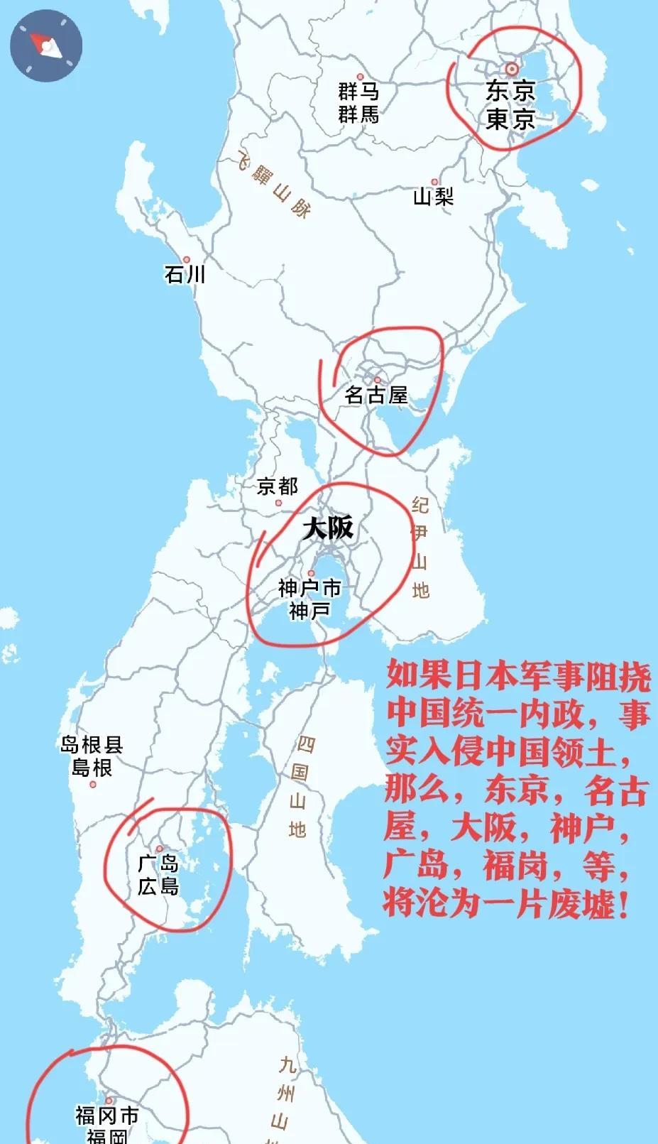 如果日本军事阻挠中国统一内政,事实入侵中国领土,那么,东京,名古屋,大阪,神户,