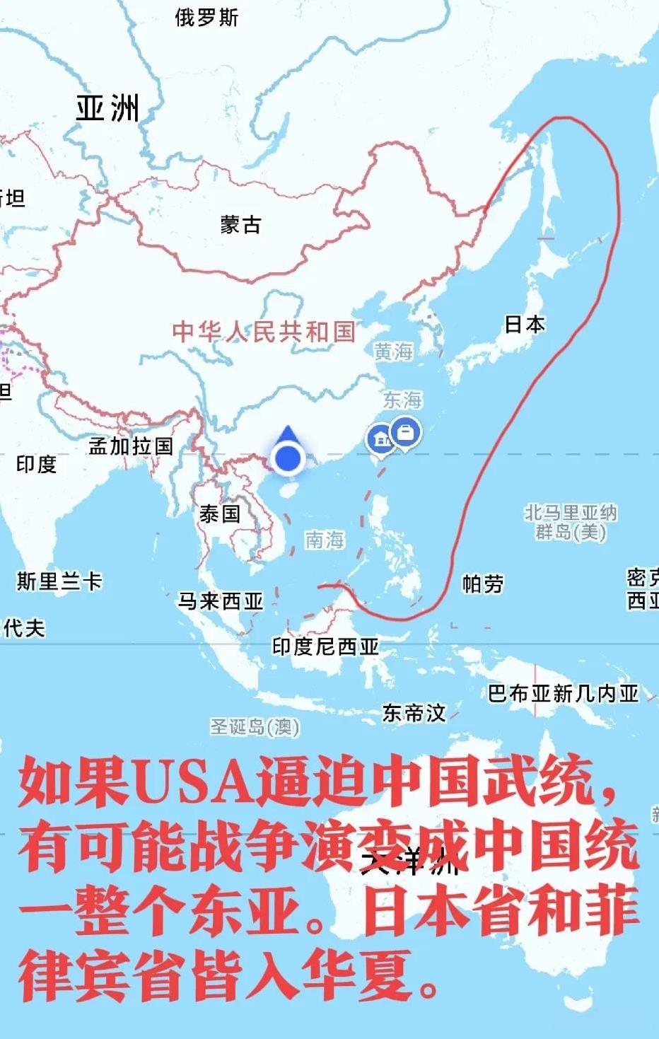 如果日本军事阻挠中国统一内政,事实入侵中国领土,那么,东京,名古屋,大阪,神户,广岛,福岗,等,将沦为一片废墟! 如果日本军事阻挠中国统一内政,中国军队可前出朝鲜半岛,轰炸东京,封锁日本各岛,逐岛歼灭。 如果USA逼迫中国武统,有可能战争演变成中国统一且中国统治整个东亚。日本省和菲律宾省皆入华夏。 #谈USA逼迫中国武统的一个可能结果!#