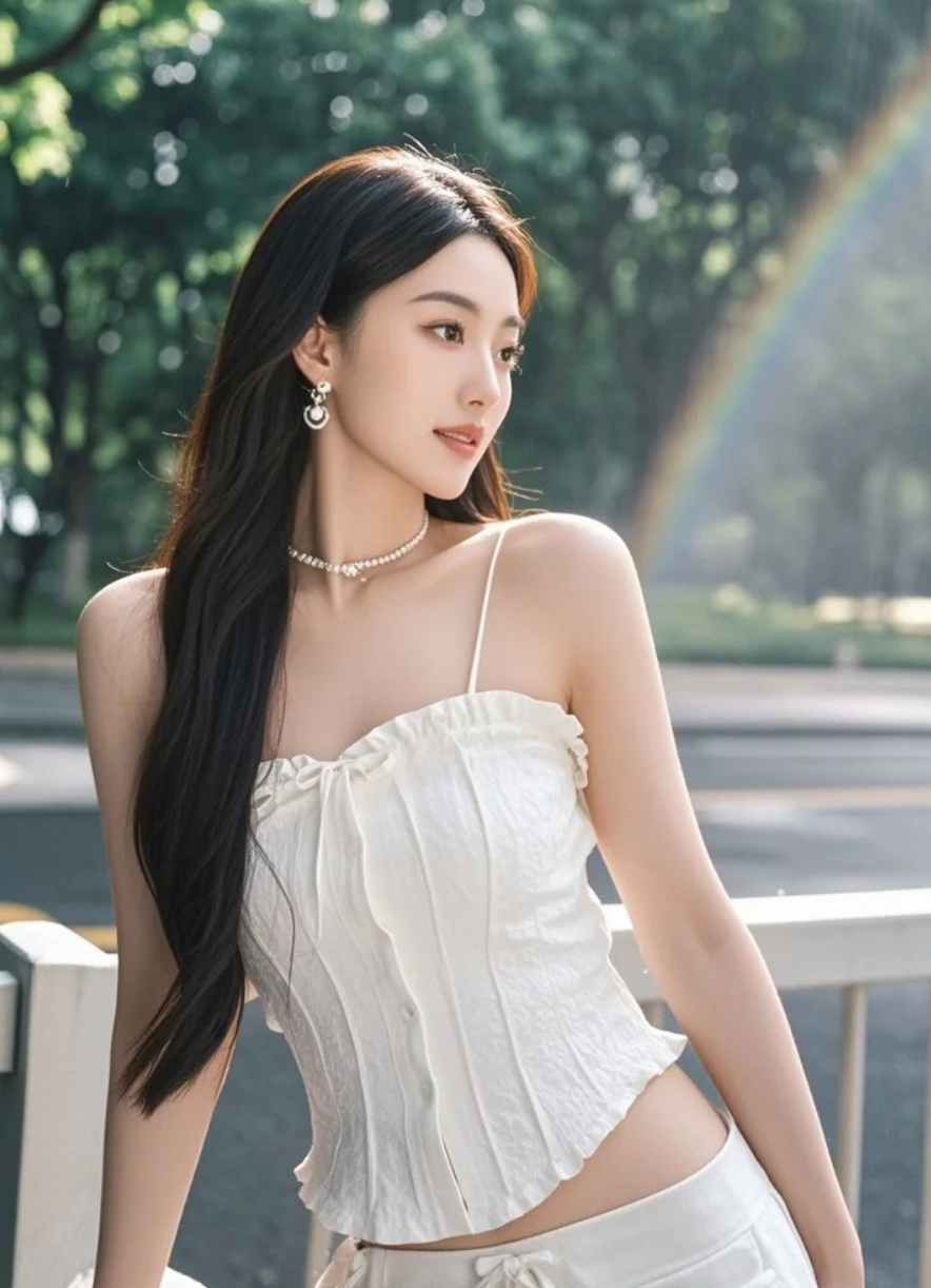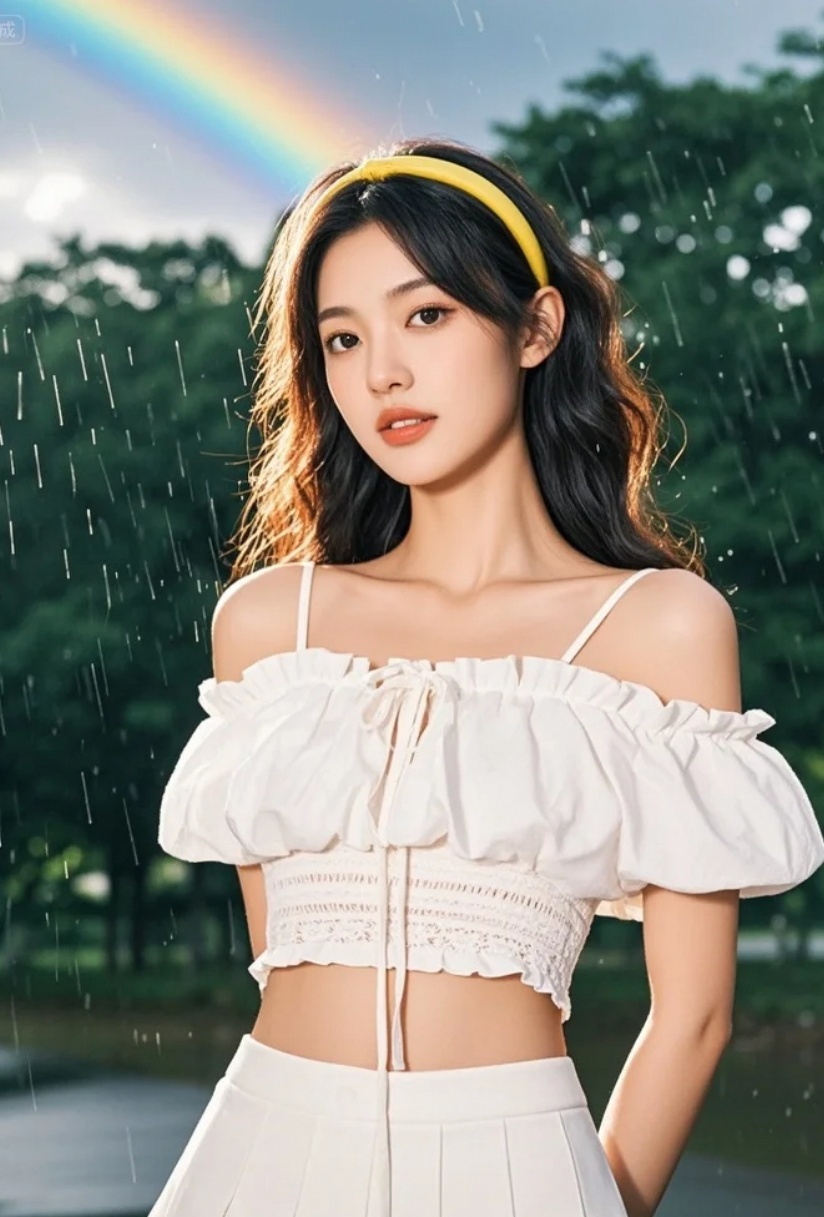 雨后初晴,她站在虹桥的倒影里,分不清是人间还是仙境。