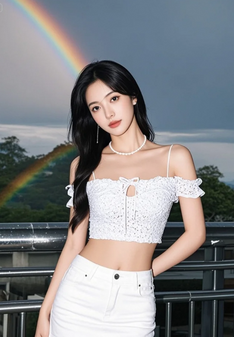 雨是天空的泪,虹是大地的吻,而她,是此刻唯一的光。