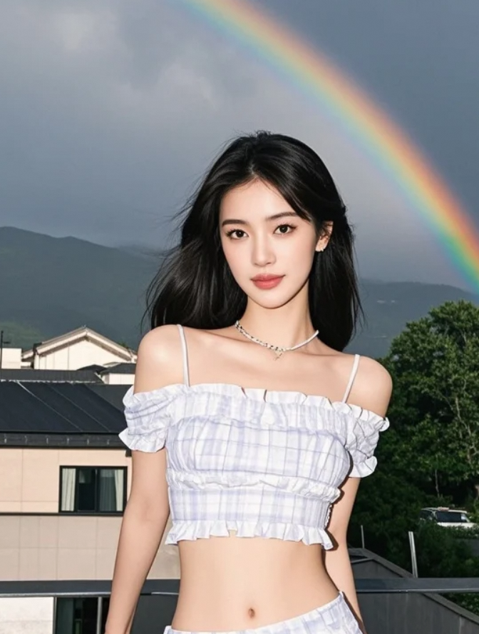 云破天光,虹桥如练,她的侧影是雨后最动人的诗行。
