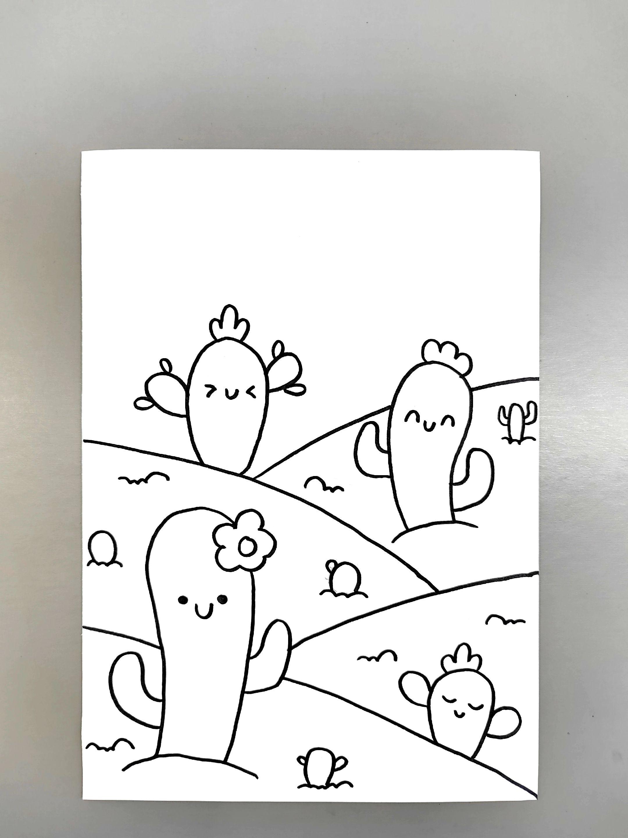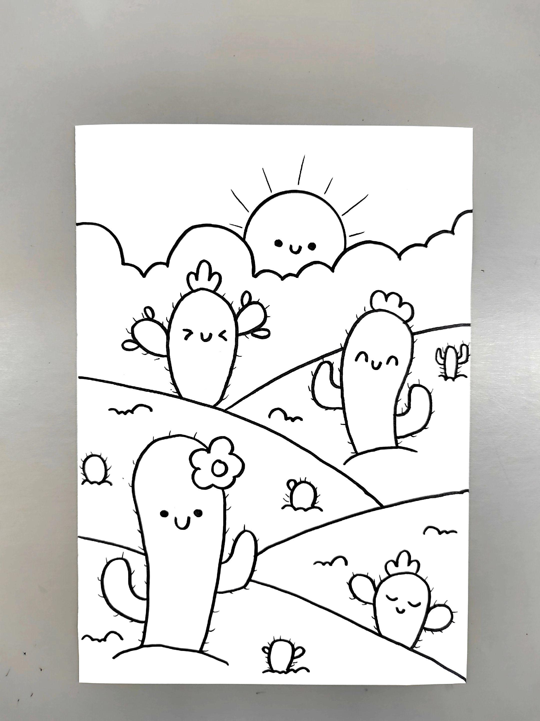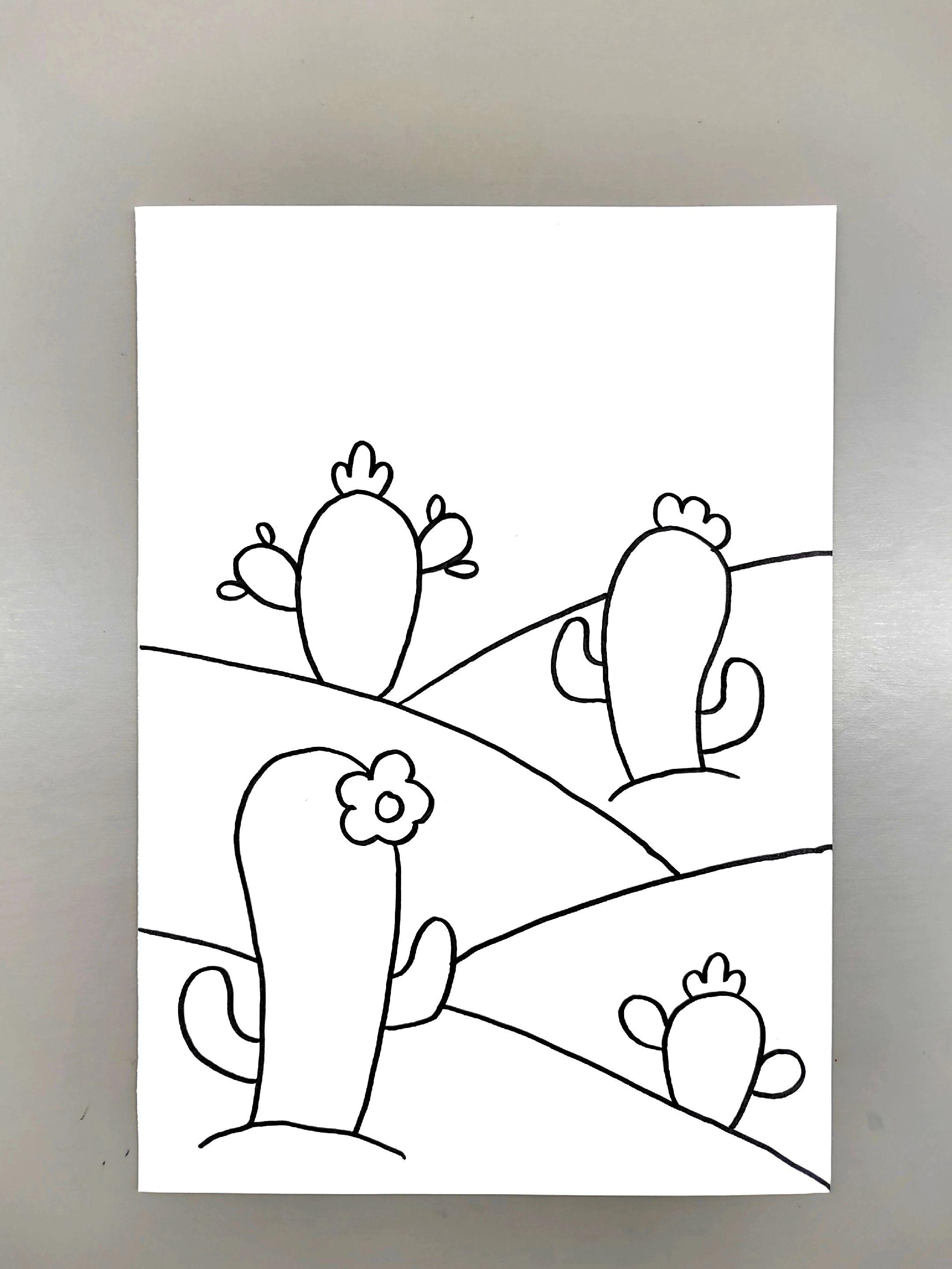 创意儿童画:沙漠里的仙人掌,简单有趣,快来试试吧