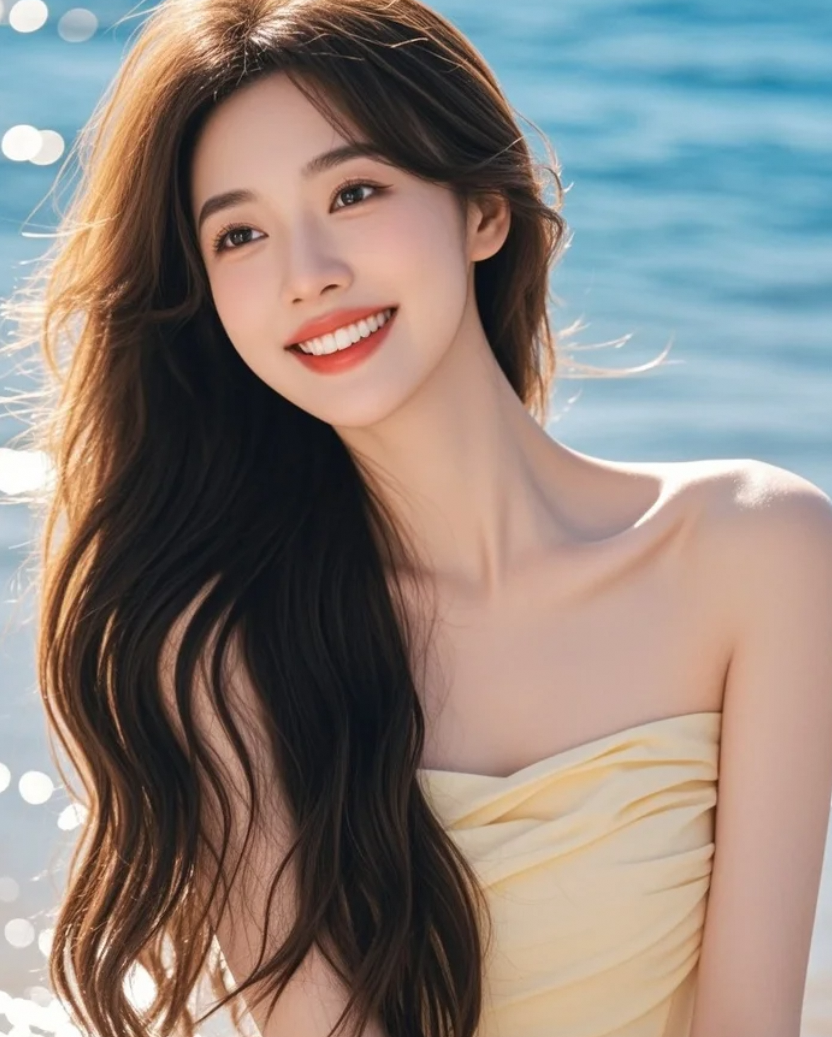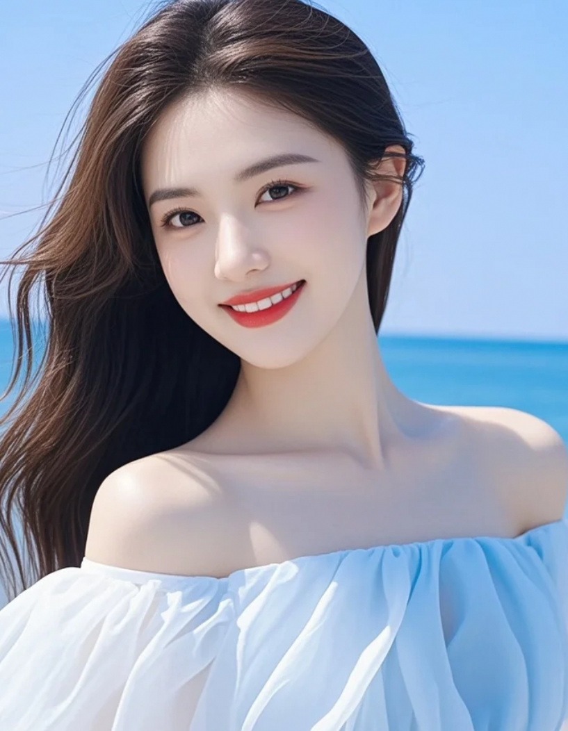 中长发如光瀑垂肩,蓝光流转,一字肩下的瓜子脸美到窒息!