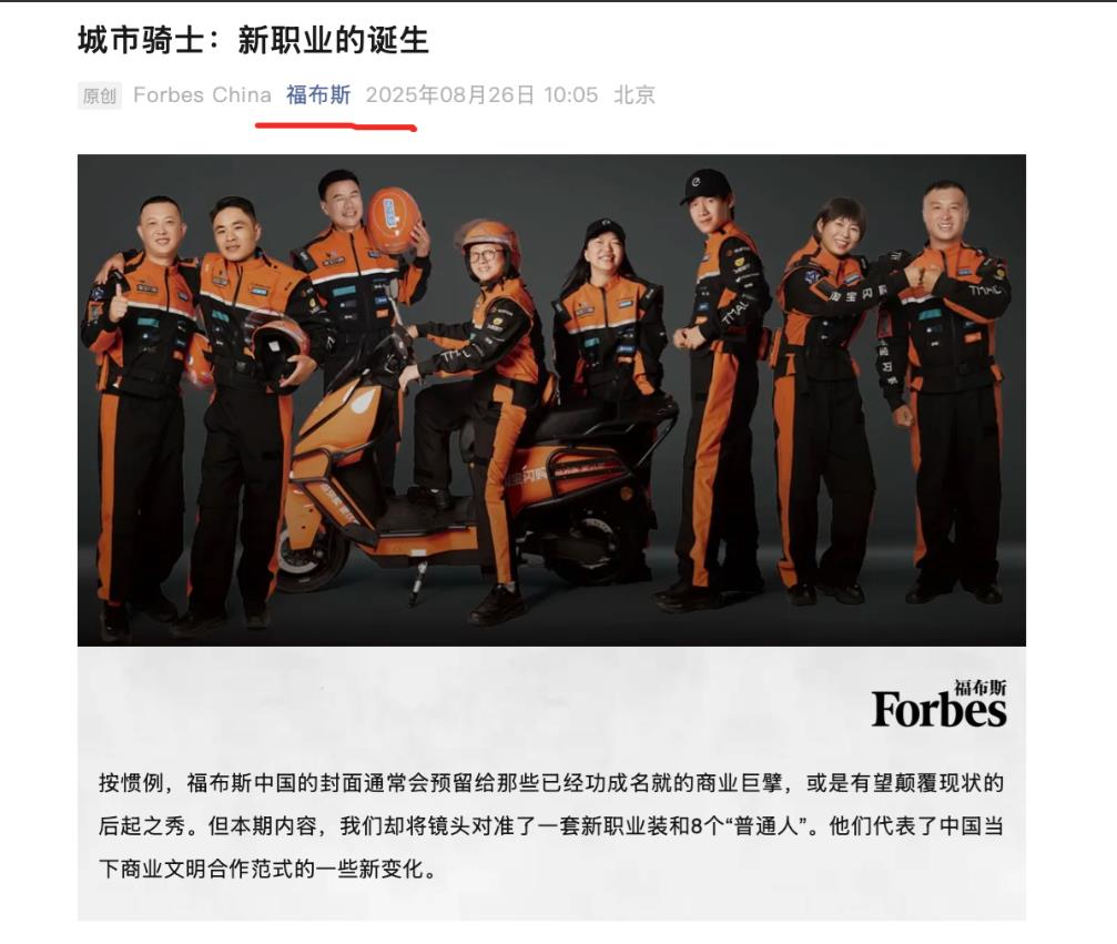 对于这个事儿,中国新就业形态研究中心主任张成刚也表示:以登上《福布斯》杂志封面为标志,从“骑手”升级为“城市骑士”,从工服升级为职业制服,再到骑士保障、激励和发展体系的全面升级,是现代服务业发展中具有标志性意义的事件,赋予了骑士群体新的职业内涵和社会意义。