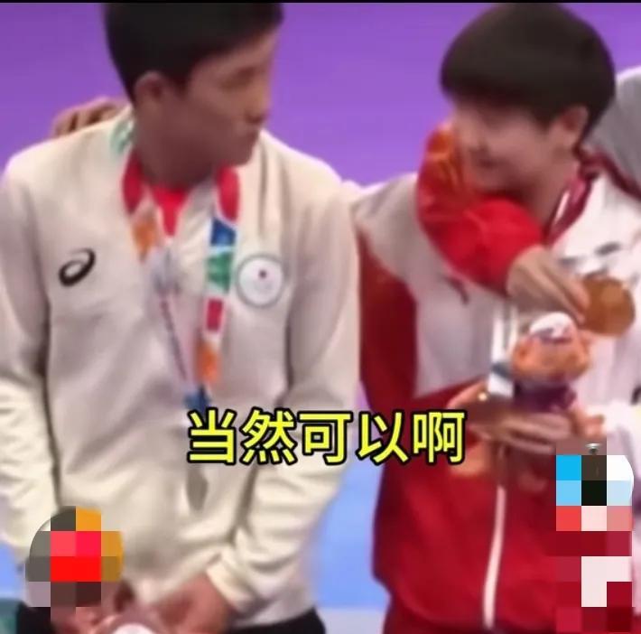 哈哈哈,张本智和是不是也挺崇拜莎莎。场下,做准备时,看他时不时转过的头,递过的眼神。莎莎赢了时,他站在后面,跟着莎莎分享胜利的果实,有崇拜,有喜欢,看着挺友善的。领奖台上,大头搂着莎莎留影纪念时,张本智和竟腼腆的像书生,不敢越豪半尺,木讷笔直地站在一边,没想到莎莎会邀请他,还伸出手来,搭在他的肩膀上,张本智和感动得接受了邀请,在友谊和亲善面前,他是如此的可爱和乖巧。