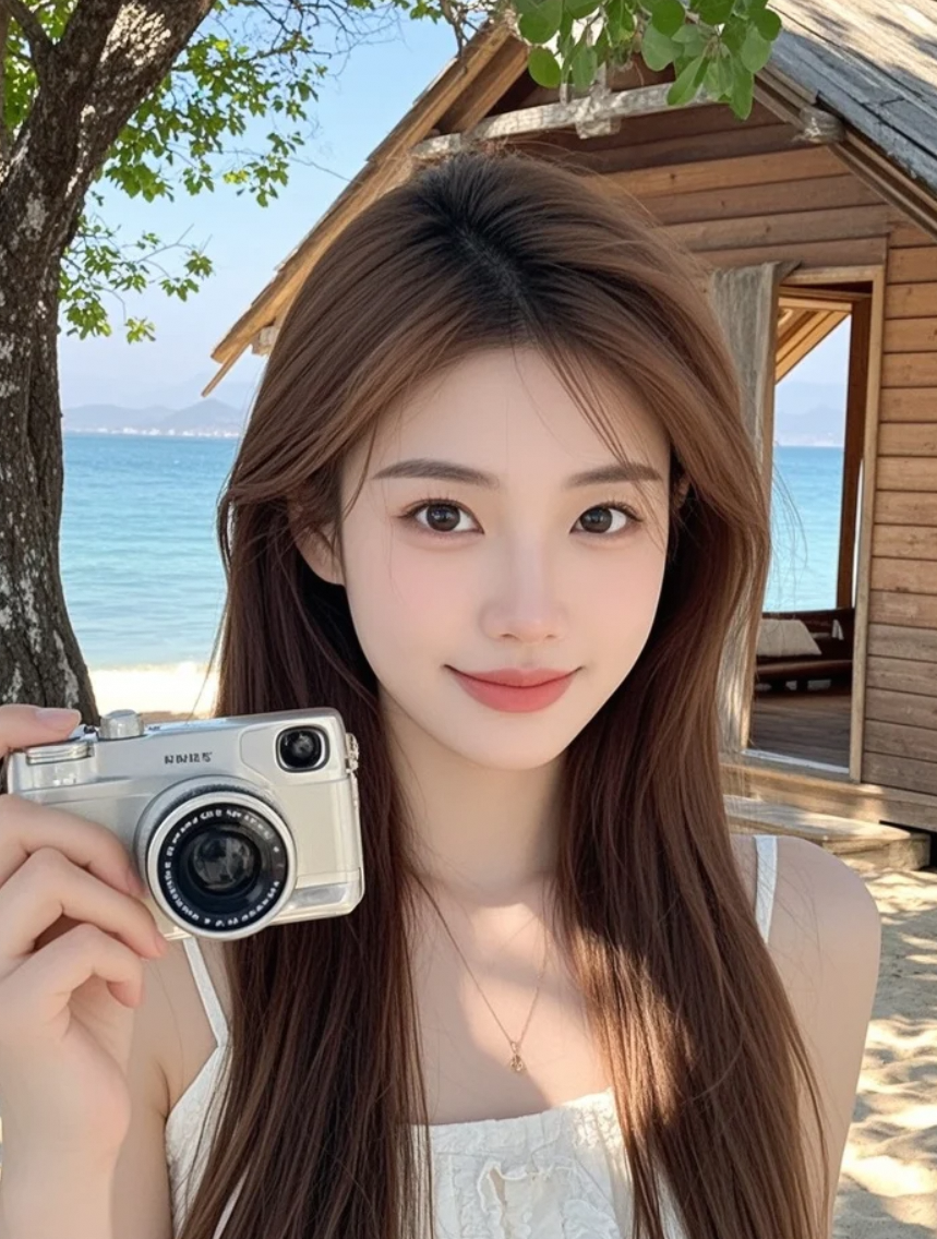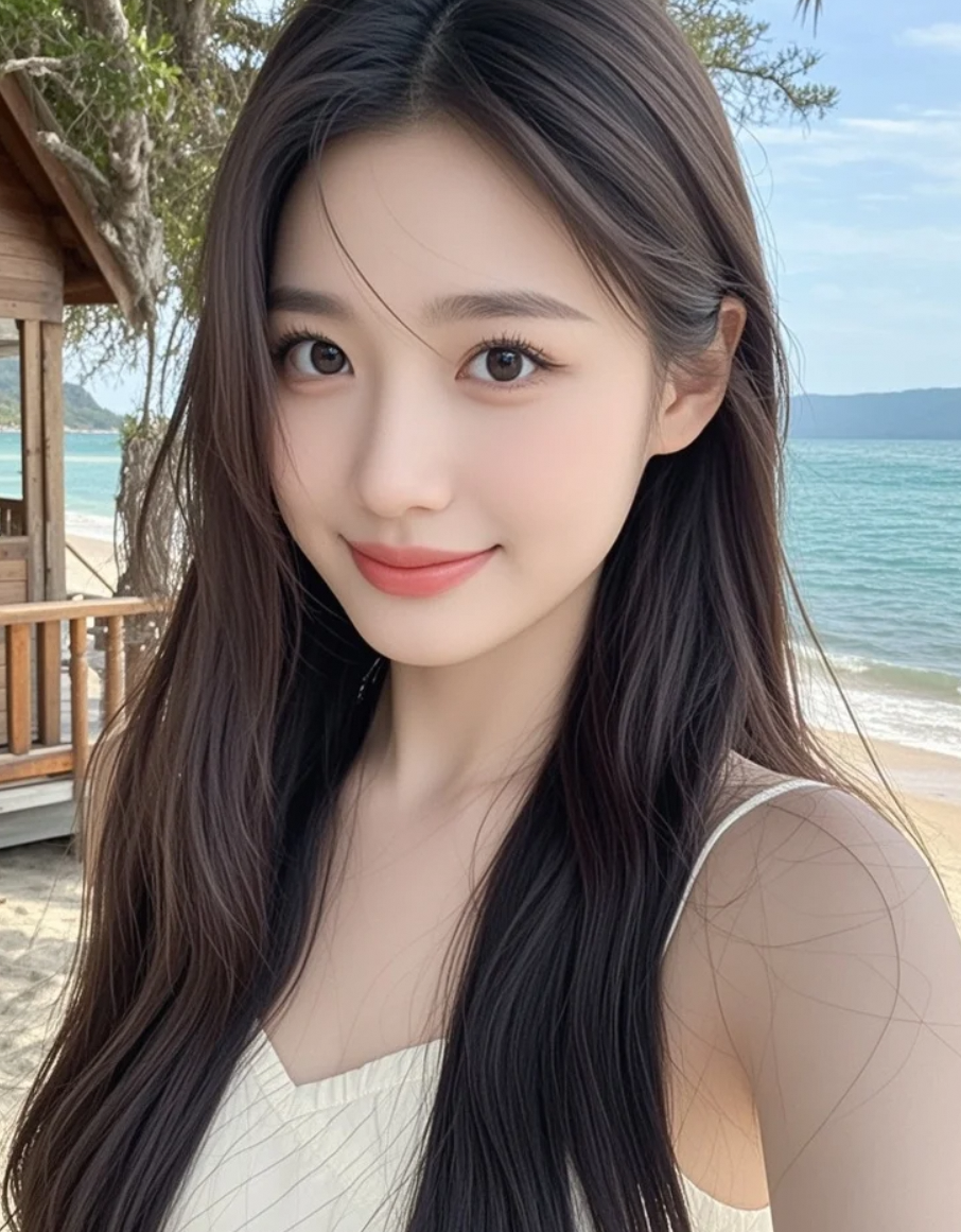 沙滩自拍ing,海风撩发,你猜浪花说了什么悄悄话?