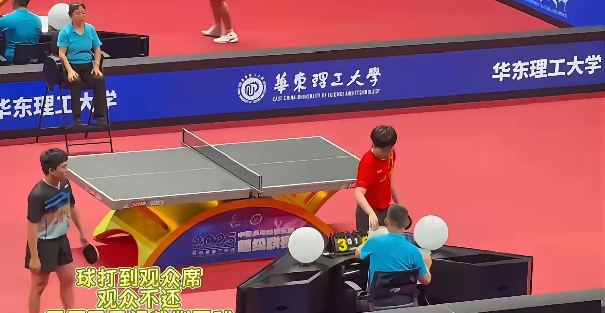 哈哈,王楚钦被欺负了,不过人家凭实力捡到的绣球,凭啥还? 昨天大头打削球手李天阳的时候, 可不轻松, 我记得第一局大头11:9才赢得。 不过大头很快找到办法, 先劈长再摆短, 遛的李天阳满场跑。 有一个球打出了围挡, 大头去要球, 被美女拒绝了, 这可是七夕节的绣球, 接到了, 凭啥还?